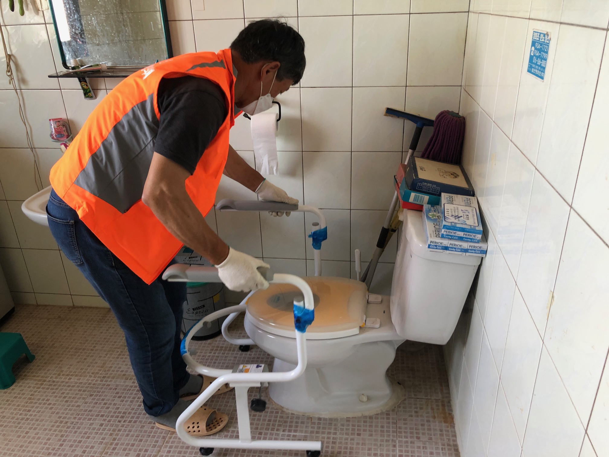 안전시설물 설치 사업은 일상생활의 편의를 제공하고 가정 내 낙상 등 안전사고를 예방하고자 거동불편 가구에 화장실 손잡이, 계단 손잡이, 미끄럼 방지매트 등을 설치하는 사업이다.