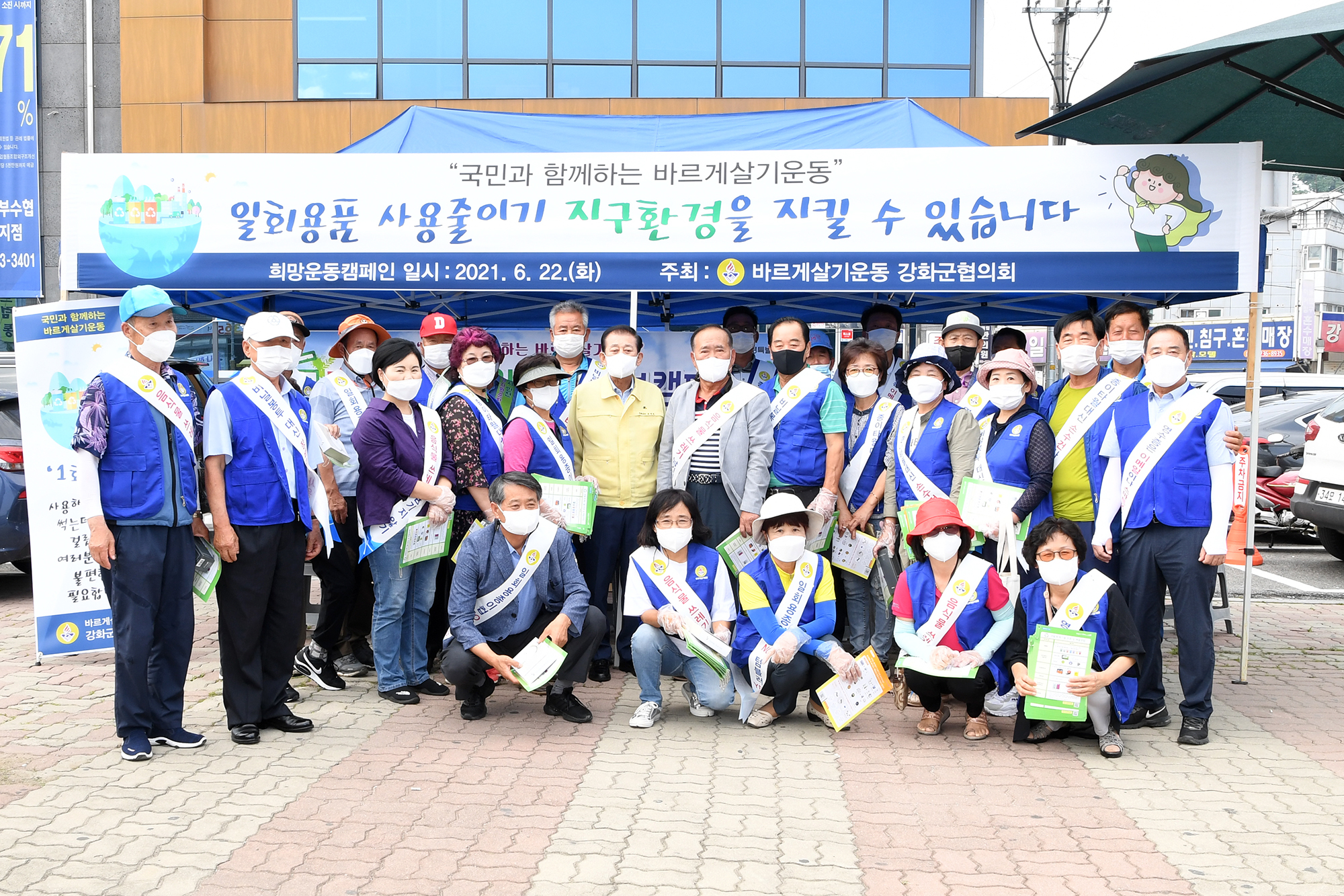이날 유천호 군수 및 군청 관계자, 바르게살기위원, 자원봉사자 등 30여 명이 참여해 △종이영수증 안 받기 △일회용품 대신 텀블러 사용 △비닐봉지 대신 장바구니 사용 등을 적극 홍보했다. 민·관 공동으로 실시한 이번 캠페인은 바르게살기운동 강화군협의회(회장 임인관)가 주관했다.