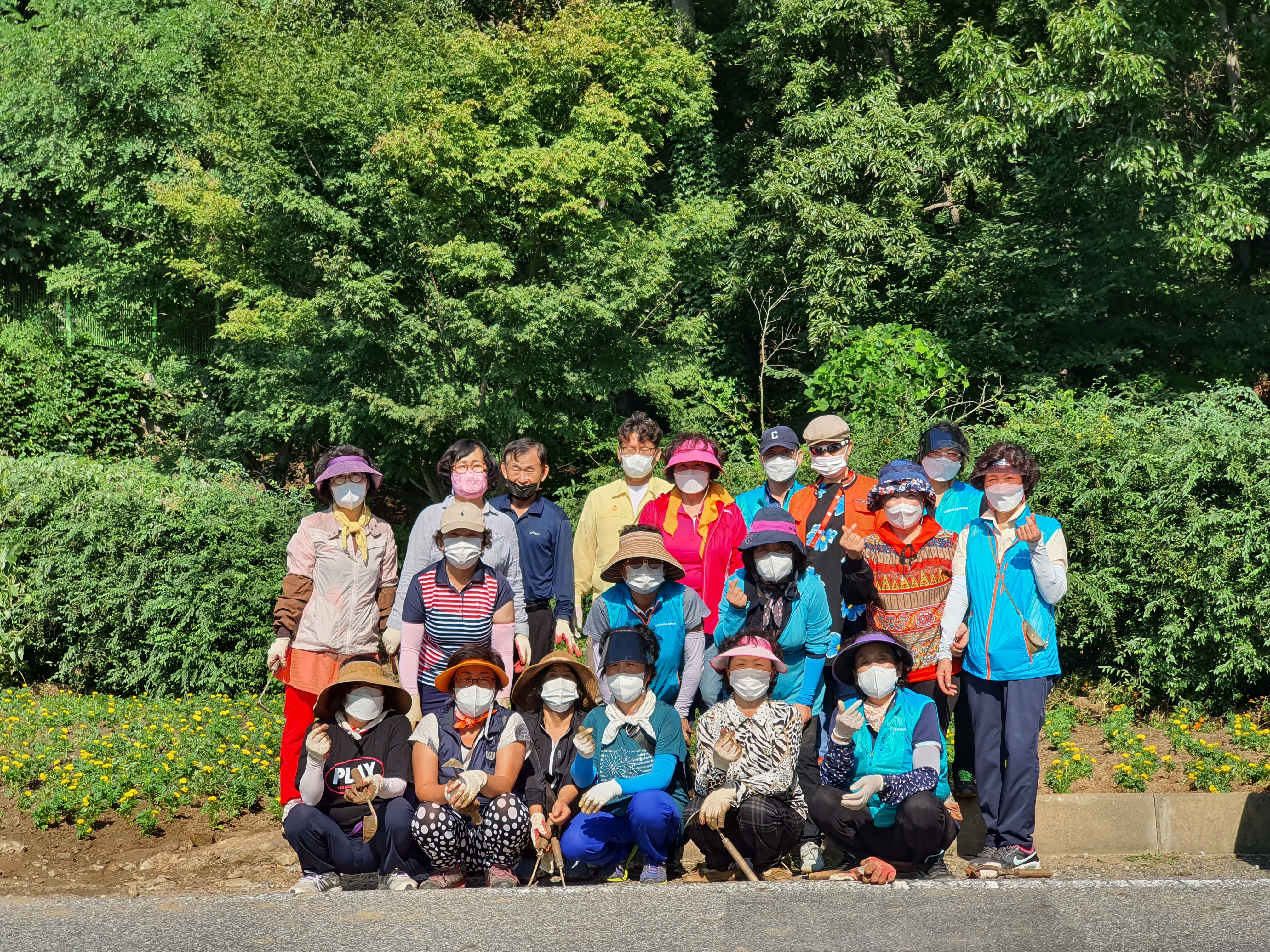 이날 협의체 회원들은 더운 날씨에도 명절을 맞아 면민들과 고향을 찾는 방문객을 위해 메리골드 3,000본을 식재했다.