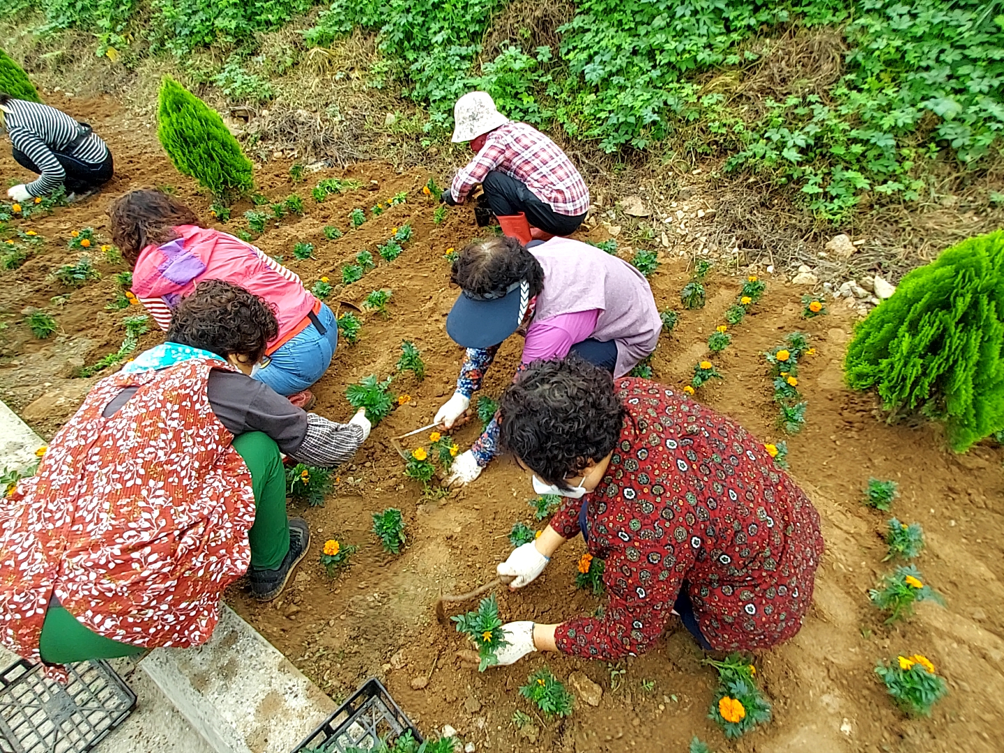 교동면 관내 단체 회원들이 구슬땀을 흘리며 심은 꽃은 추석 즈음 만개할 예정이다.