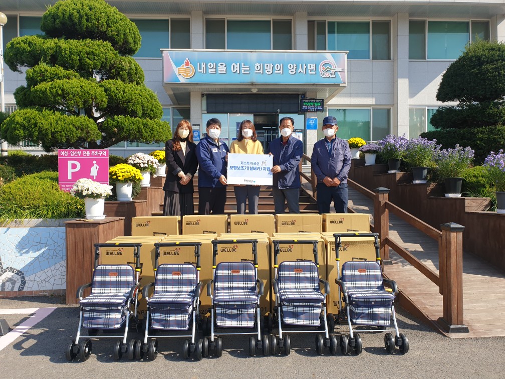 강화군 양사면(면장 이명자)은 지난 22일 사단법인 ‘함께하는 사랑밭’이 전달한 보행보조기 ‘실버카’ 20대를 이장단(단장 주웅재)이 관내 저소득 독거노인 가구에 방문·전달했다고 밝혔다.