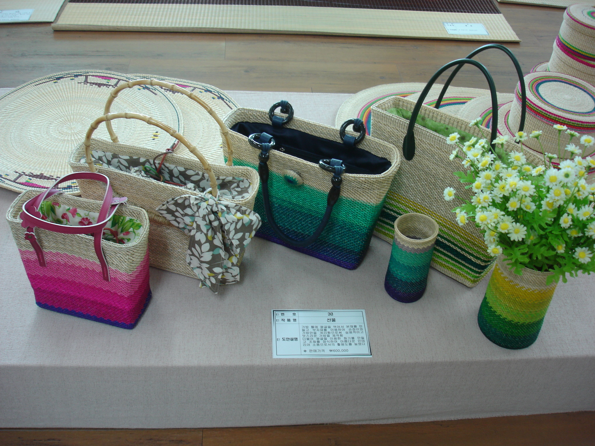 전시 왕골공예품으로는 귀금속 보관이나 장식용으로 그 효용가치가 높은 ‘꽃삼합’, 봉황, 태극무늬 등을 수놓은 ‘화방석’, ‘손가방’ 등 각종 생활 인테리어 소품이 소개된다. 이번 전시를 통해 화려하면서도 소박한 무늬와 더불어 우아하고 정교한 수공예품인 화문석을 강화도의 새로운 고부가가치 미래산업으로 육성할 수 있는 토대가 마련될 것으로 기대된다.