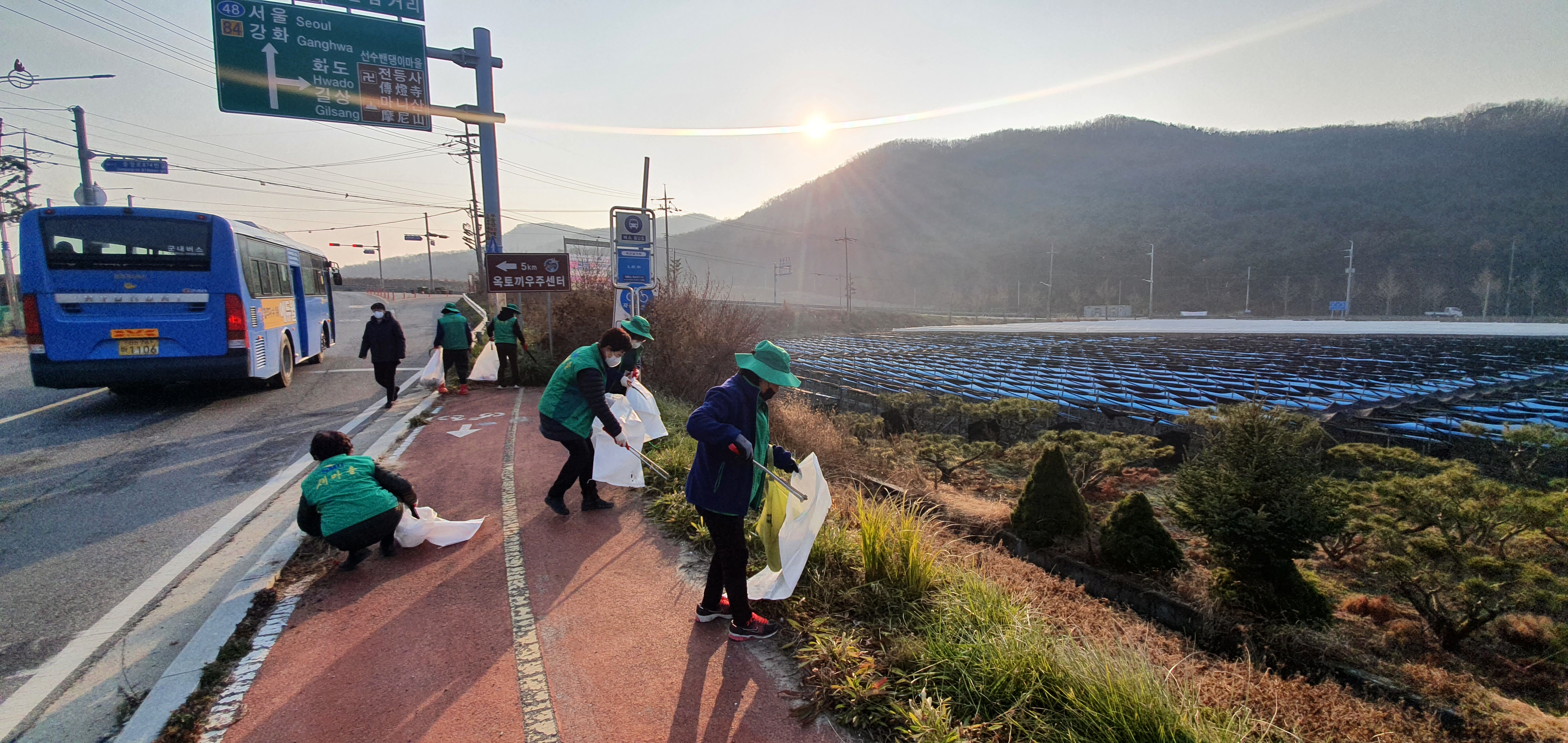 이날 회원 12명은 추운 날씨에도 이른 아침부터 나와 도로변 방치된 쓰레기 약 2톤가량을 수거하며 지역 청결에 힘을 보탰다.