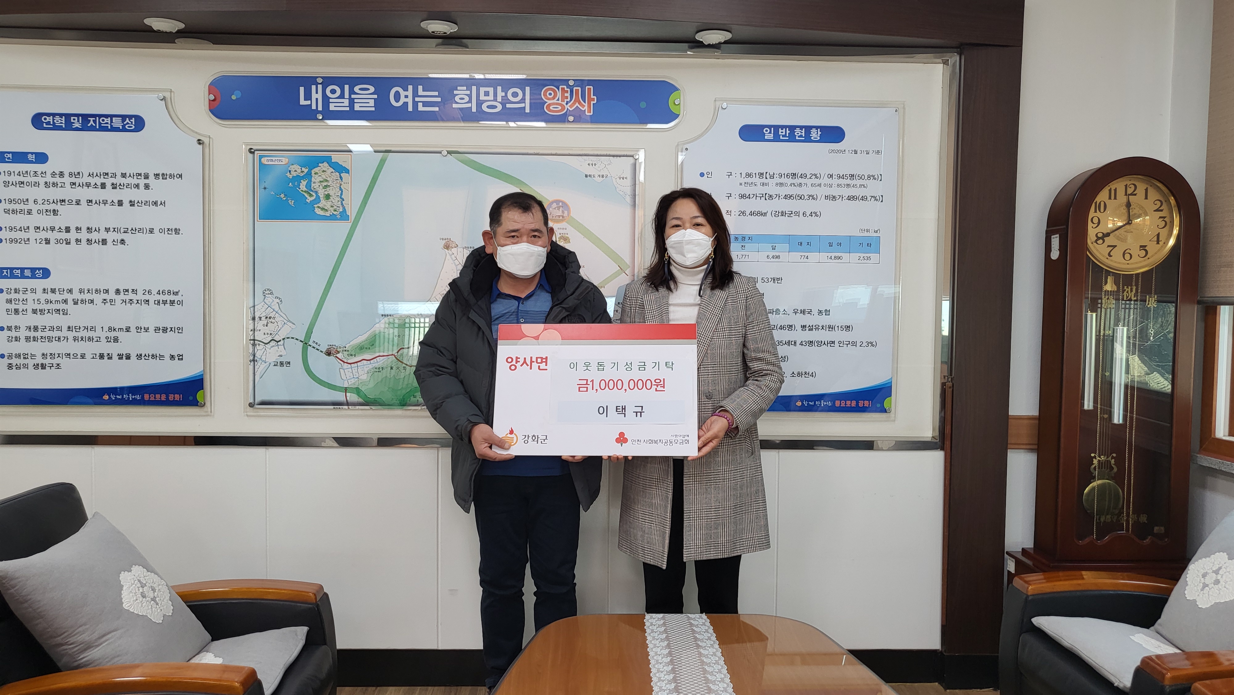 강화군 양사면에는 연말연시 어려운 이웃을 돕기위한 기탁이 이어지고 있다.