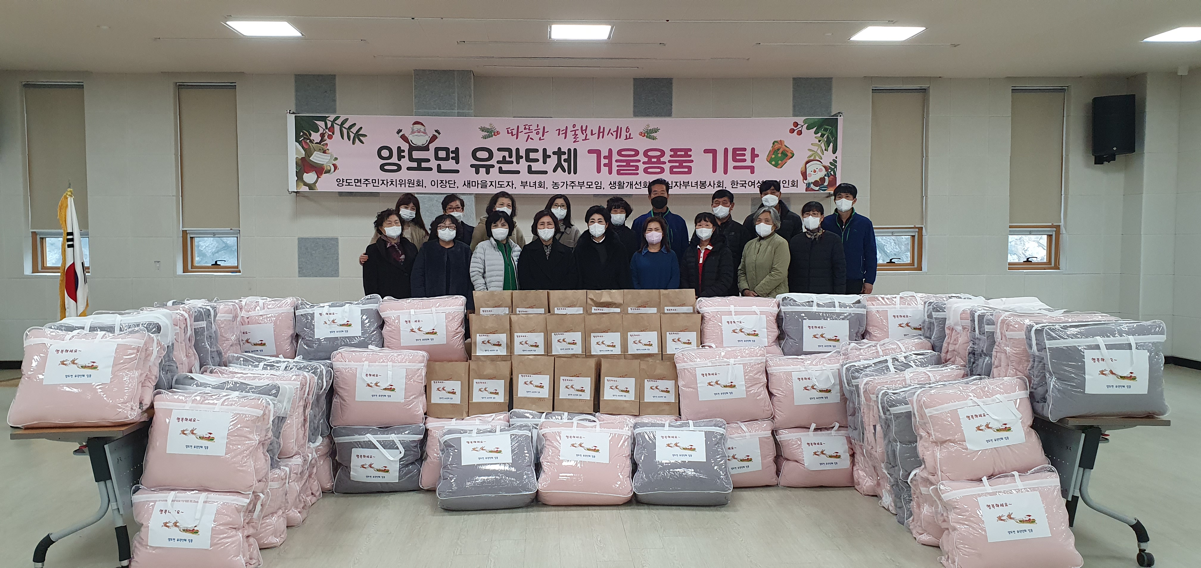 이번 활동에는 양도면 8개 단체(주민자치위원회, 이장단, 새마을지도자, 부녀회, 농가주부모임, 적십자부녀봉사회, 생활개선회, 한국여성농업인회)가 물품 선정부터 전달까지 직접 참여했다.