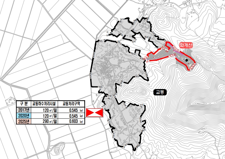 특히, 수려한 경관으로 고려후기 대사성 이색이 전국 8대 명산으로 꼽은 화개산에 조성한 수도권 최고의 가족 휴양형 공원인 화개정원이 준공을 앞두고 있어 변화하는 지역 여건을 반영한 교동하수처리장의 처리용량 증설이 시급한 실정이었다.