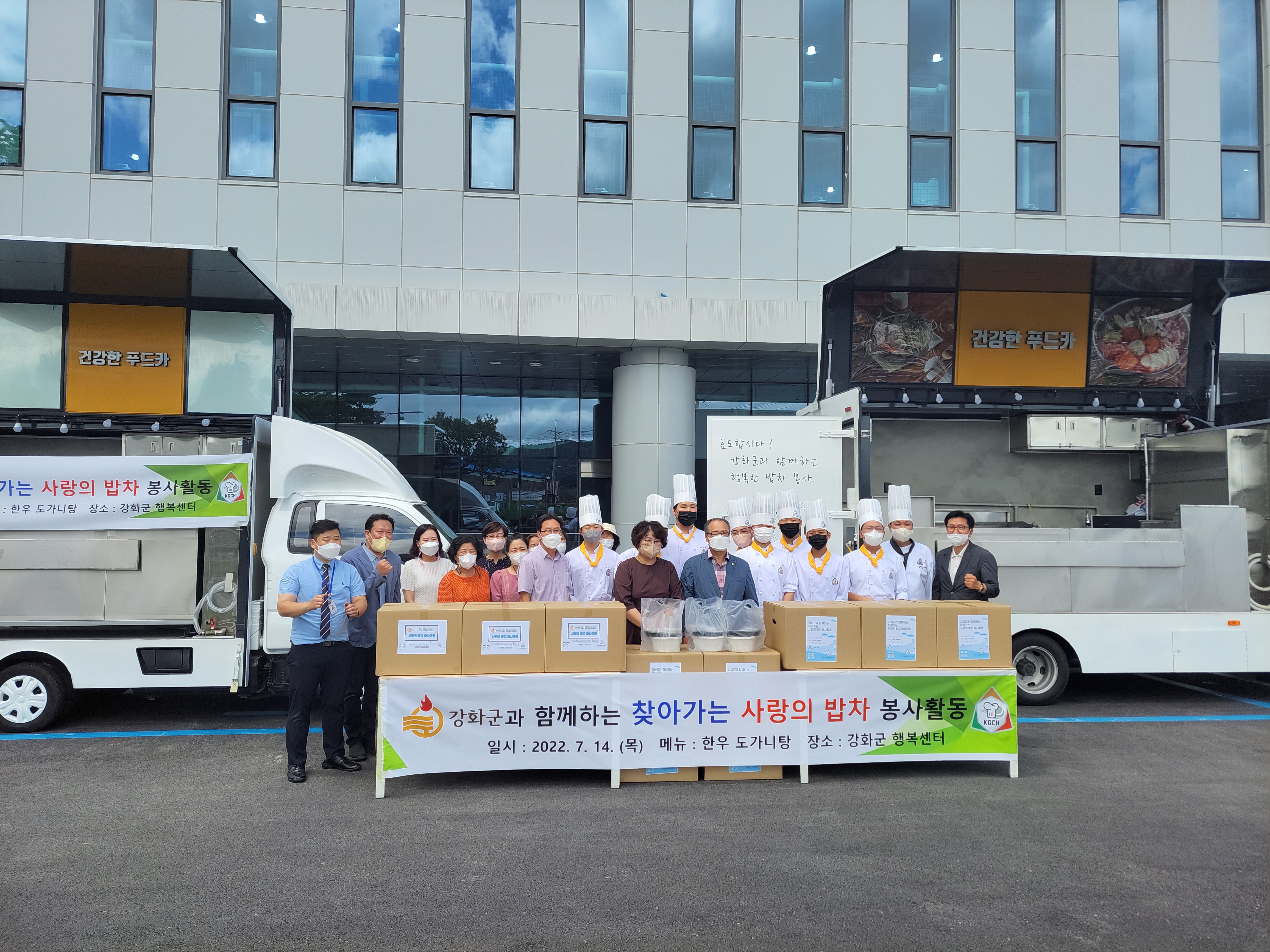 강화군 한국글로벌세프고등학교는 지난 14일 관내 어르신들께 한우도가니탕 도시락을 전달하는 ‘찾아가는 사랑의 밥차’ 봉사를 펼쳤다.