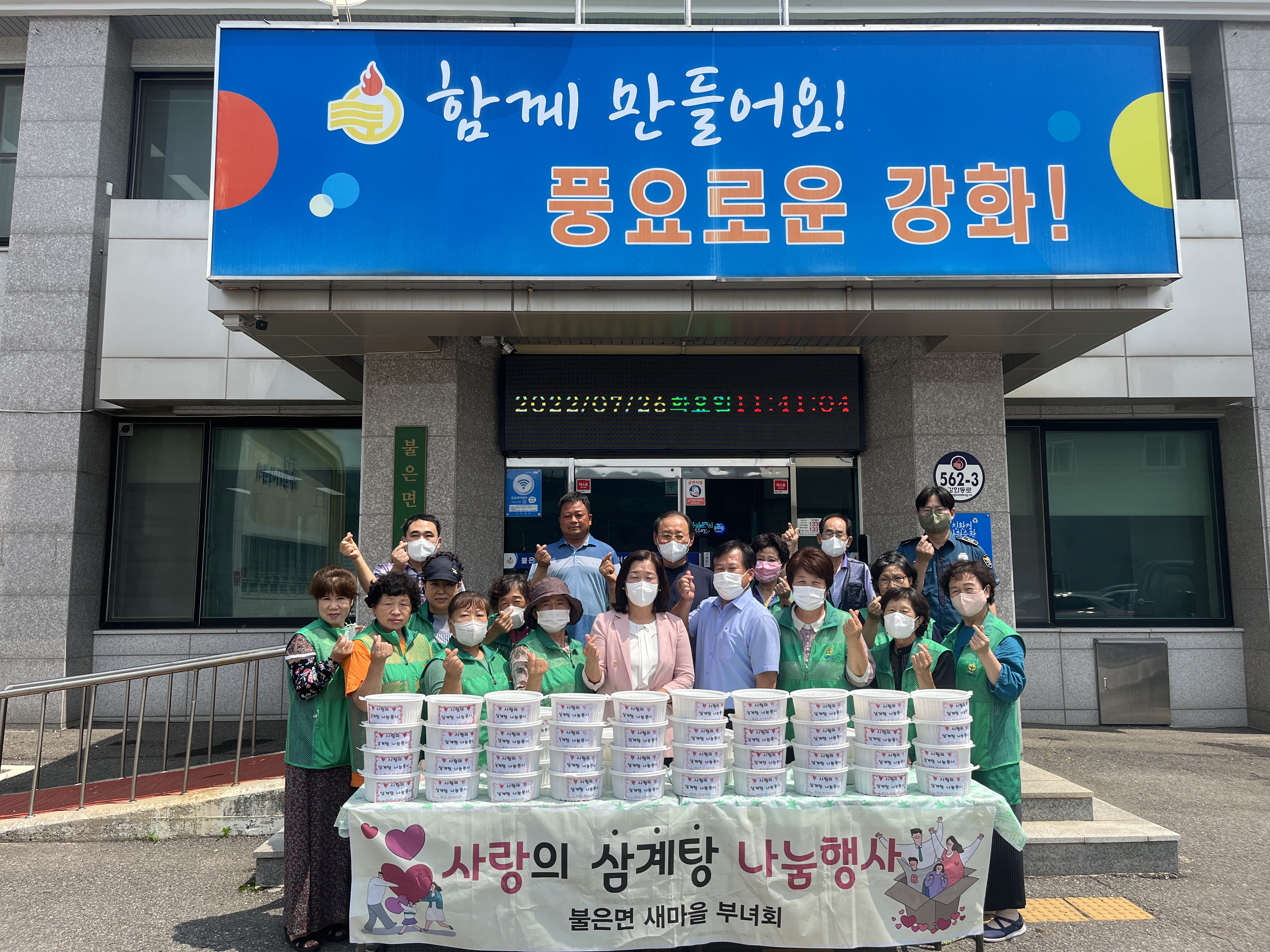 강화군 불은면 새마을부녀회(회장 최옥임)는 지난 26일 관내 어려운 이웃들에게 건강한 여름나기를 위한 삼계탕 나눔 봉사를 진행했다.