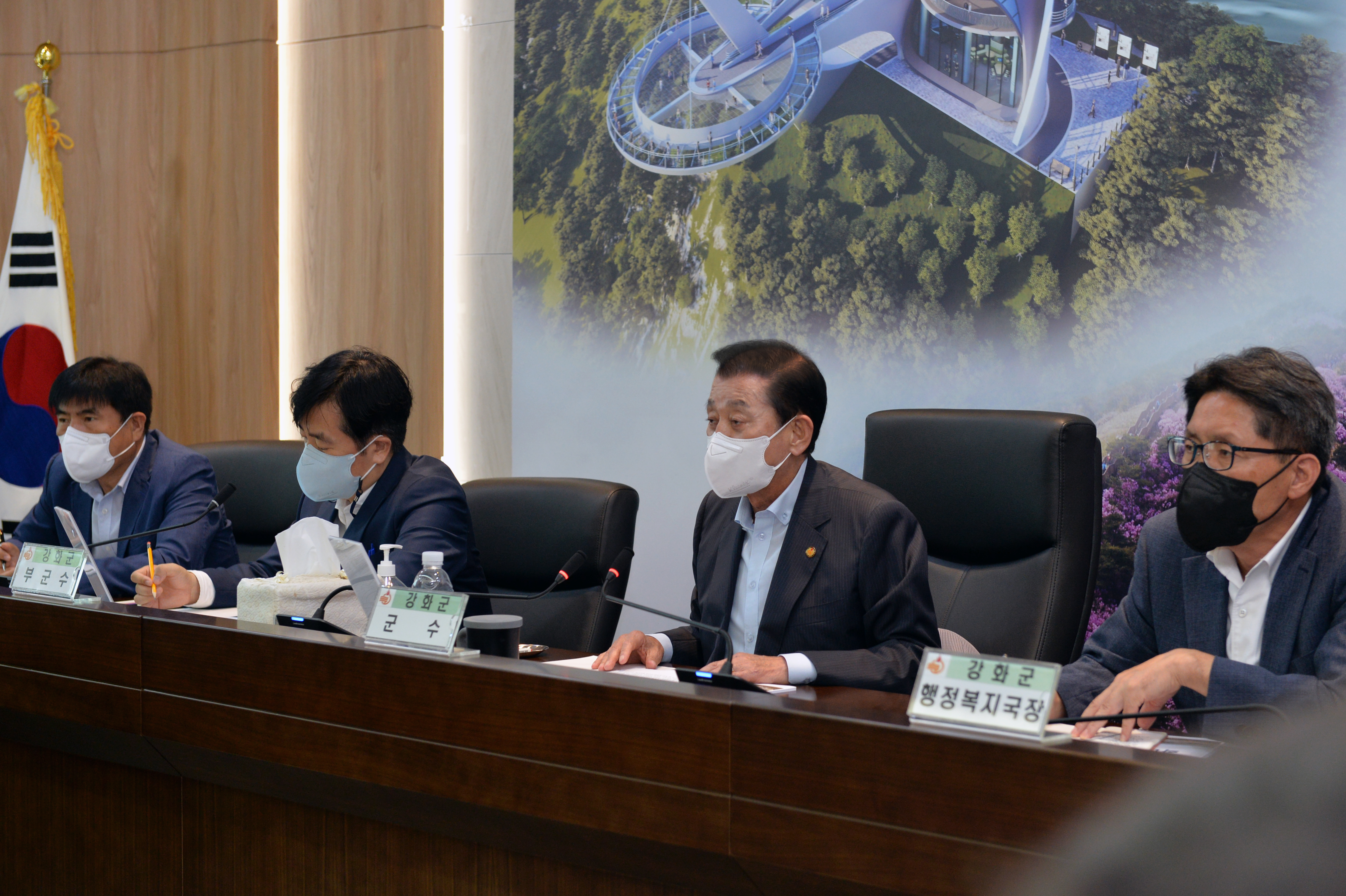 유천호 군수는 “인천시의 재정규모는 매년 증가하고 있지만 강화군에 대한 시비보조금은 유독 제자리에 머물고 있다”며 “민선8기의 공약사업이 임기내 완료될 수 있도록 시비보조금 확보에 사활을 걸어달라”고 말했다. 이어 “도시관리계획 결정, 인·허가 등 각종 행정절차를 원스톱으로 추진해 계획된 사업이 속도감 있게 추진될 수 있도록 만전을 기해달라”고 말했다.