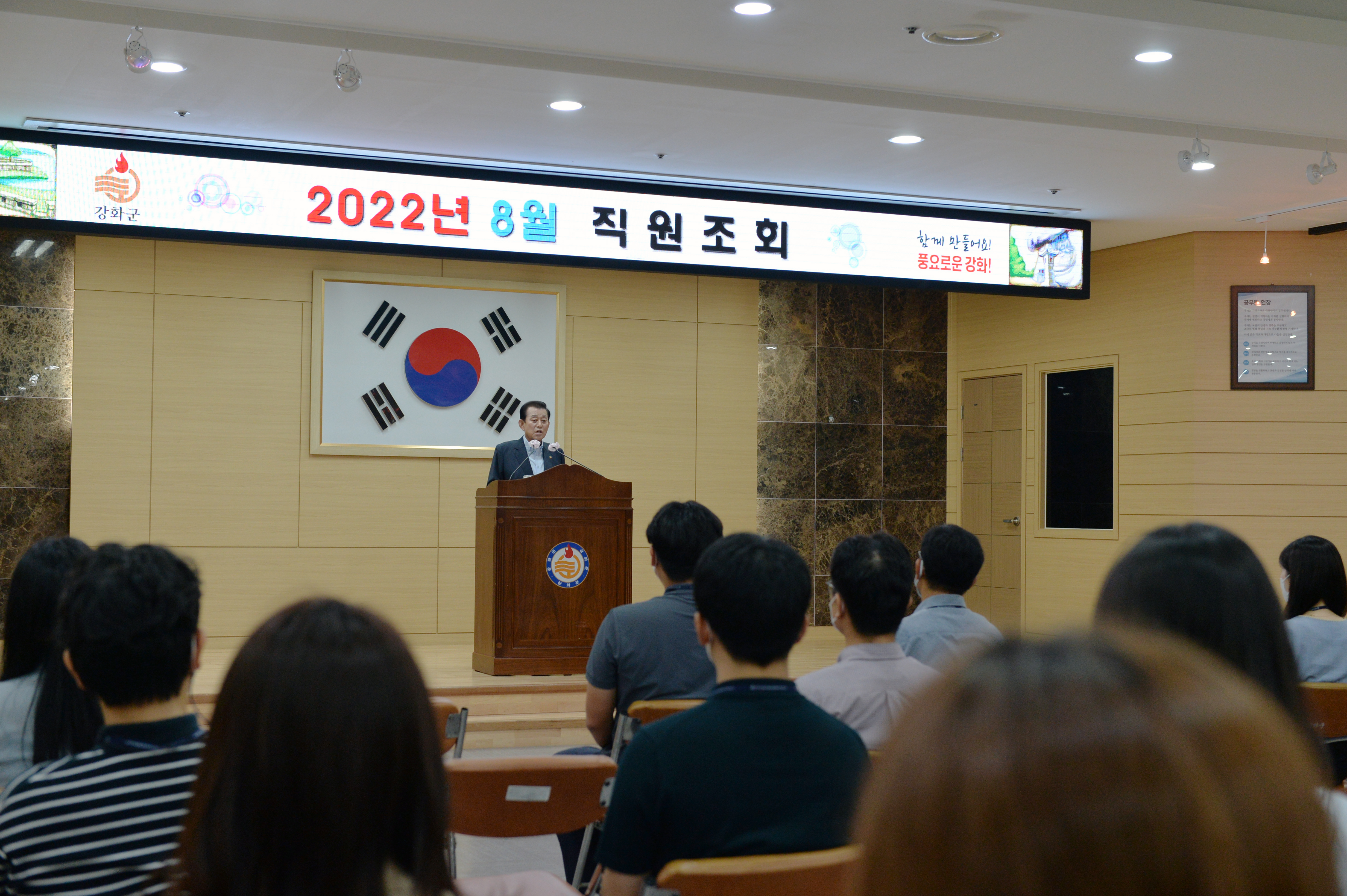 강화군(유천호 군수)는 2일 ‘8월 월례조회’와 ‘확대 간부회의’를 잇따라 개최했다.