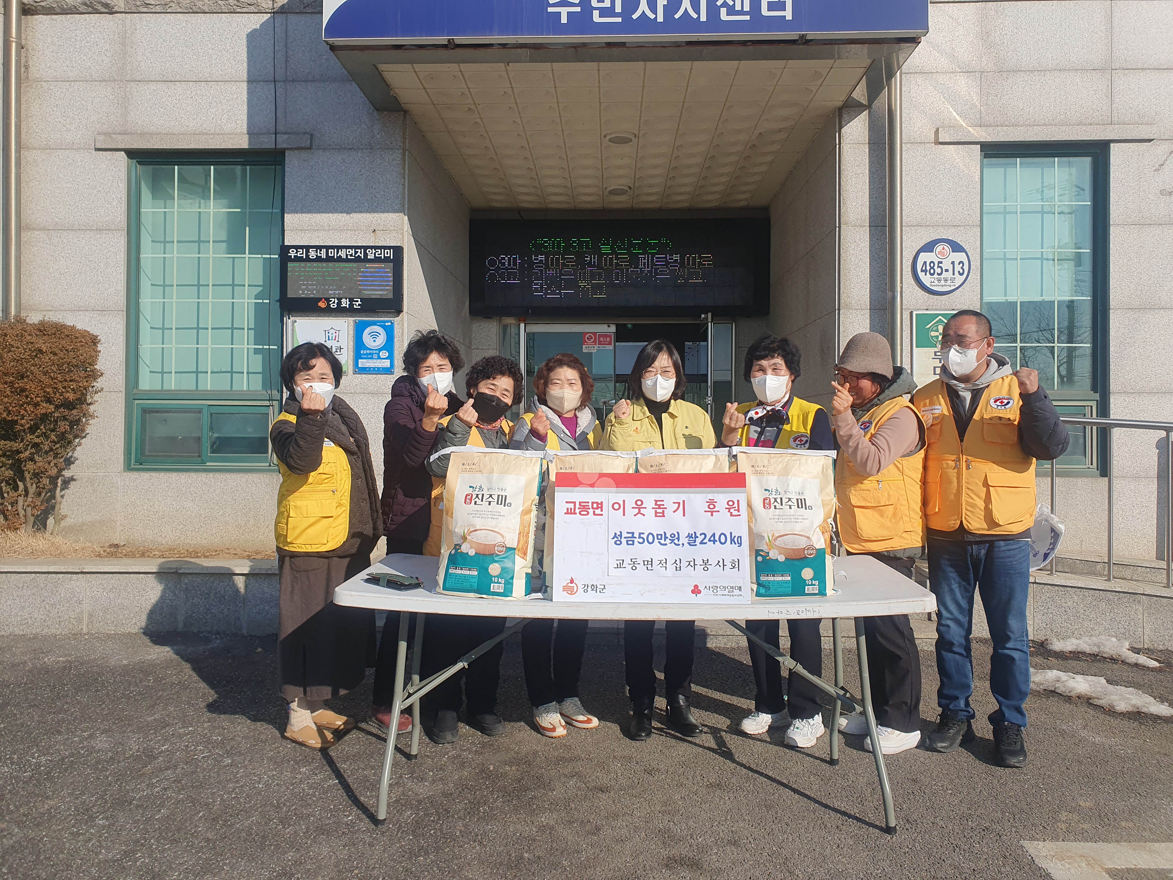 이에 조현미 교동면장은 “새해에도 꾸준하게 이웃 사랑을 실천하시는 적십자봉사회에 감사드리며, 기탁하신 성금과 쌀은 도움의 손길이 필요한 곳에 지원하겠다”고 전했다.