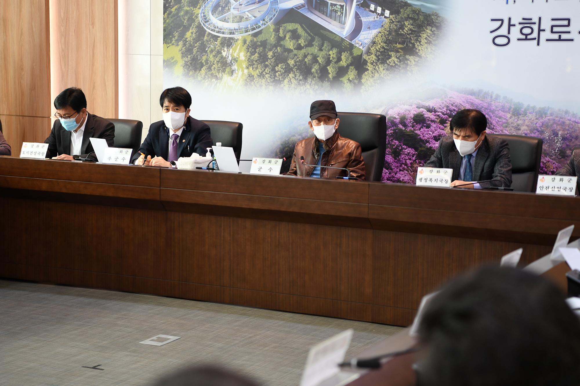 이어진 회의에서는 ▲공직자 이행충돌 방지 ▲봄 행사관련 추진계획 ▲복지사각지대 대상자 발굴 ▲헬스케어 경로당 구축사업 추진상황 보고 ▲대형산불 및 대형화재 예방 추진 ▲청년 자격증 응시료 지원 ▲미세먼지 불법배출 예방감시 사업 추진 ▲여성농업인 행복바우처 지원사업 ▲양식장 소독제 및 수질안정제 지원 ▲도로시설물 기능개선사업 ▲아름다운 강화가꾸기 사업 등 다양한 현안 및 사업에 대한 진행 상황과 향후 계획을 공유했다.