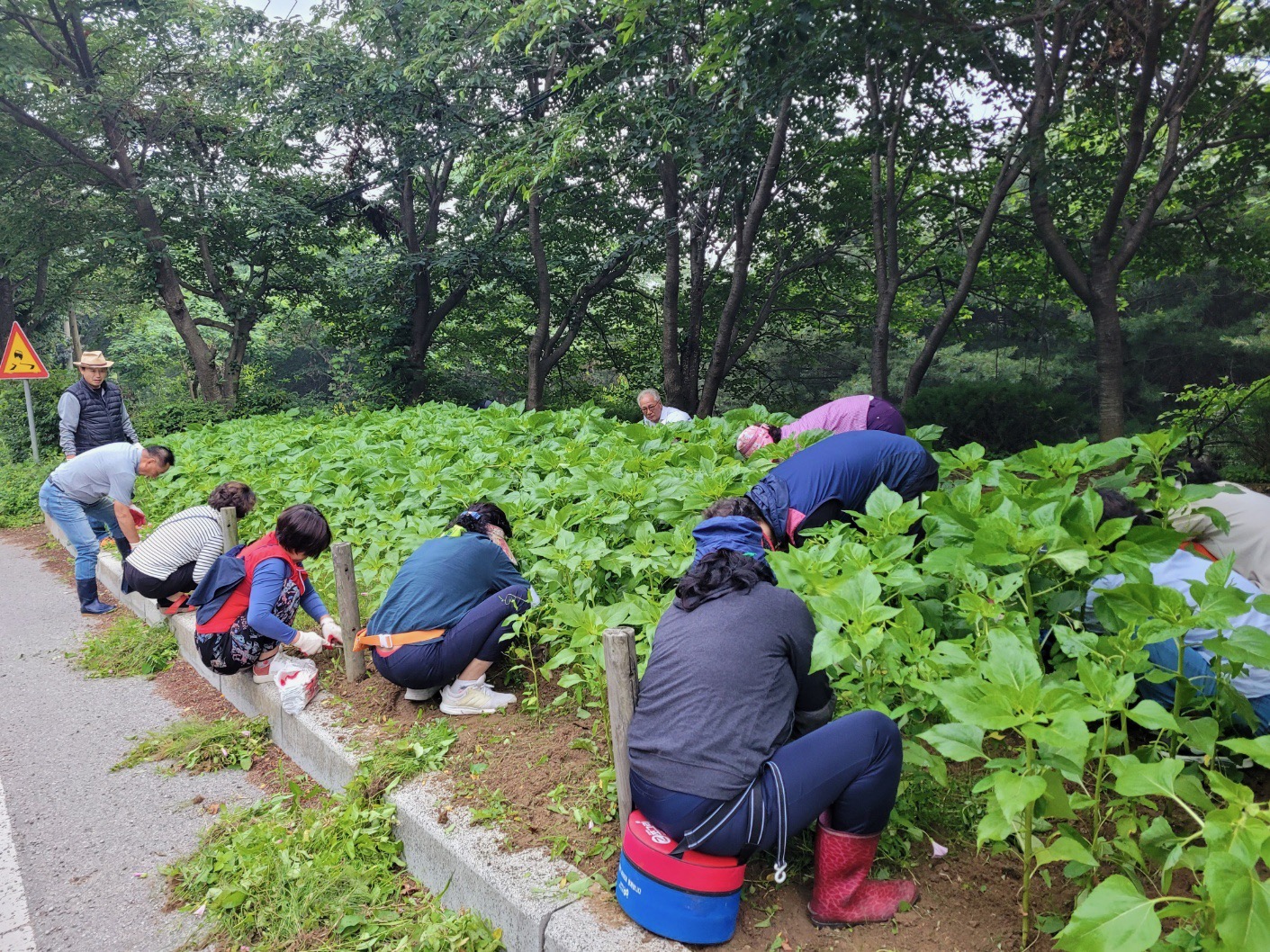 작업에 참석한 주민자치위원회 회원 20여 명이 차량과 도보 이용이 많은 고비고개 정상 및 오상리 화단에 무성히 자란 잡초를 제거하며 화단을 단장했다.
