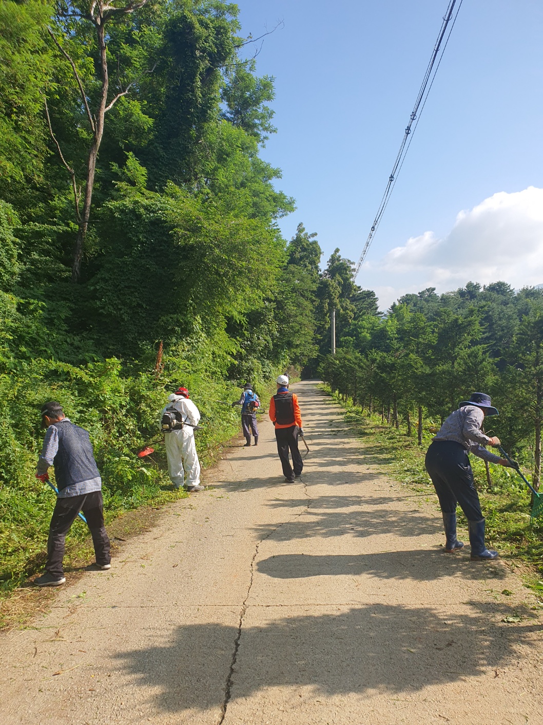농촌지도자회 회원 30여 명이 참석해 내1리 매너미 입구부터 고개 너머 흥왕리까지 환경 정비를 실시하고, 작업에 앞서 안전 교육을 받았다.