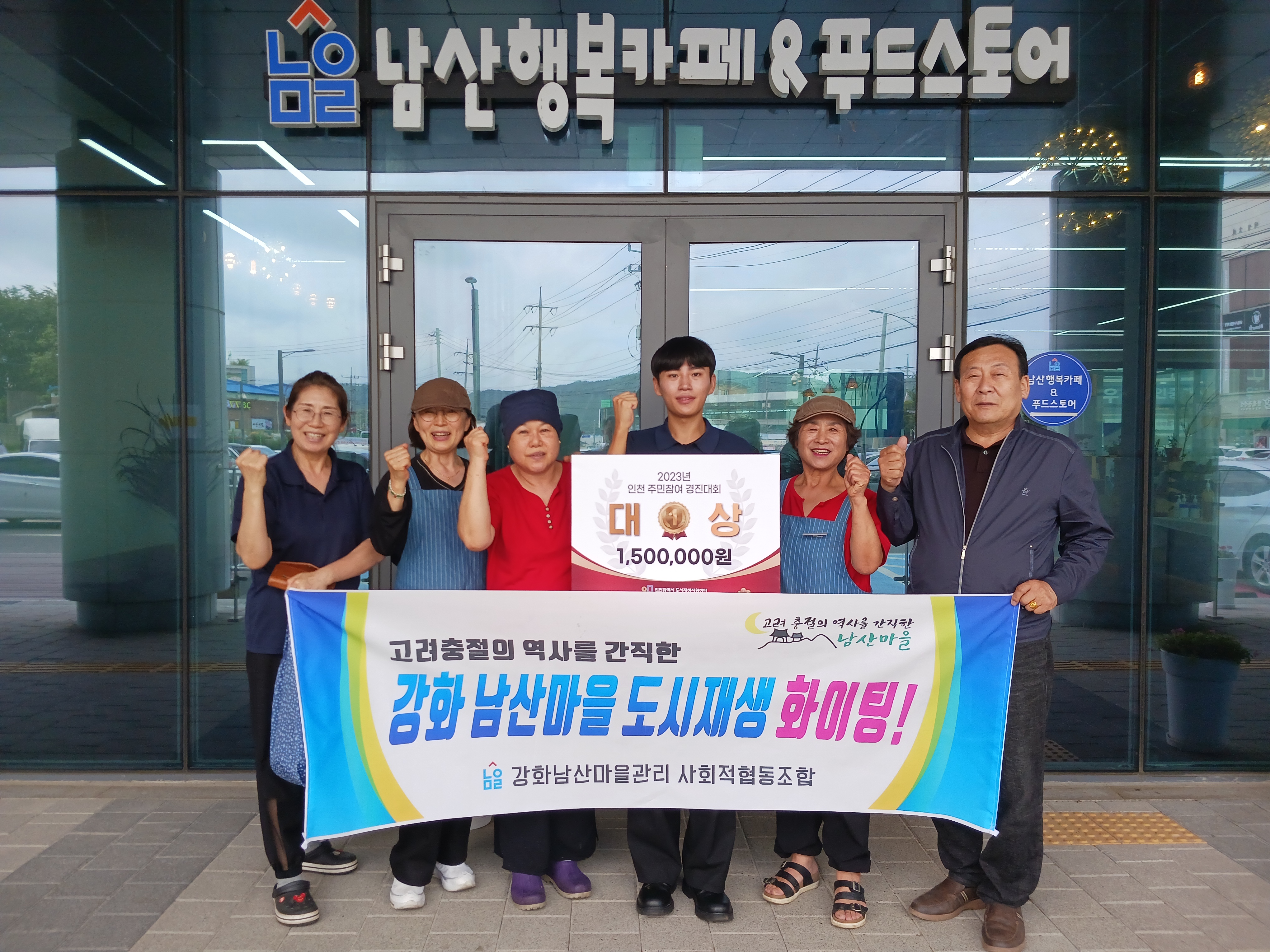 강화군(군수 유천호)은 지난 23일 진행된 ‘2023년 인천시 도시재생 주민참여 경진대회’에서 강화남산마을관리 사회적협동조합(이사장 김상배)이 대상을 수상했다고 밝혔다.