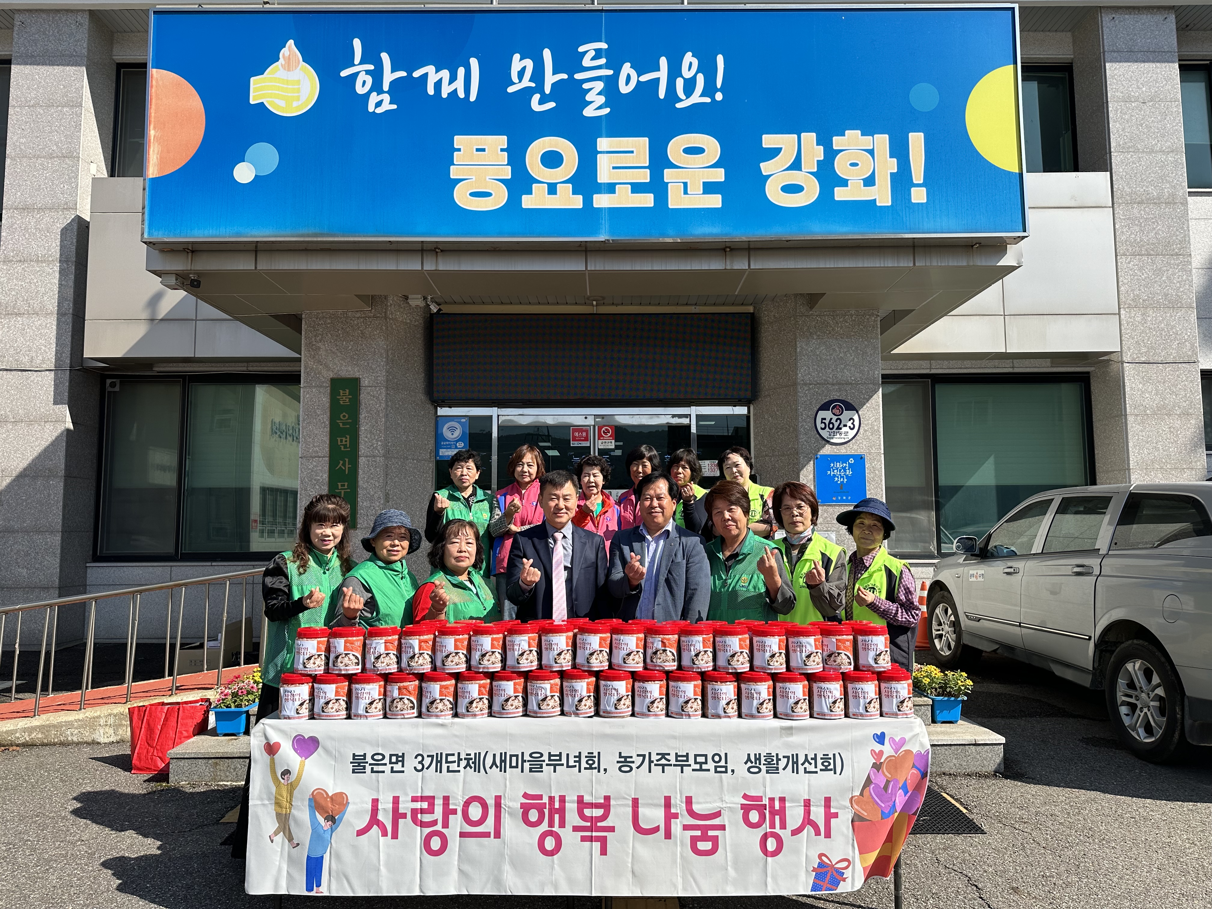 이에 김용수 불은면장은 “매년 사랑의 행복 나눔 봉사를 진행해주시는 3개 단체 회원분들께 진심으로 감사드리며, 어려운 이웃을 위한 나눔 봉사에 지속적인 관심을 당부드린다.”고 전했다.
