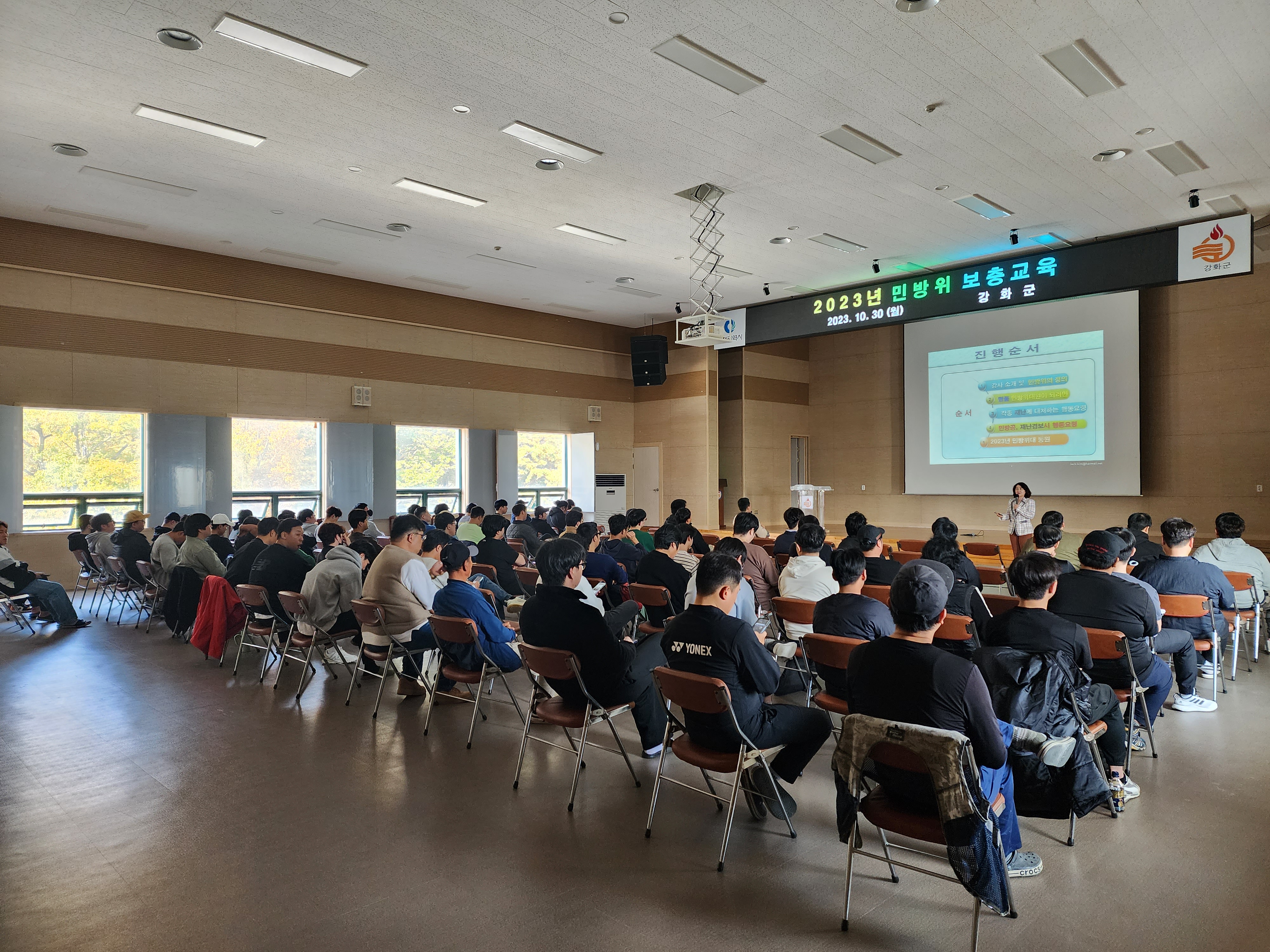 강화군(군수 유천호)이 30일, 강화군 농업기술센터 대강당에서 상반기 본 교육을 이수하지 못한 민방위 대원을 대상으로 ‘민방위 보충 교육’을 진행했다.