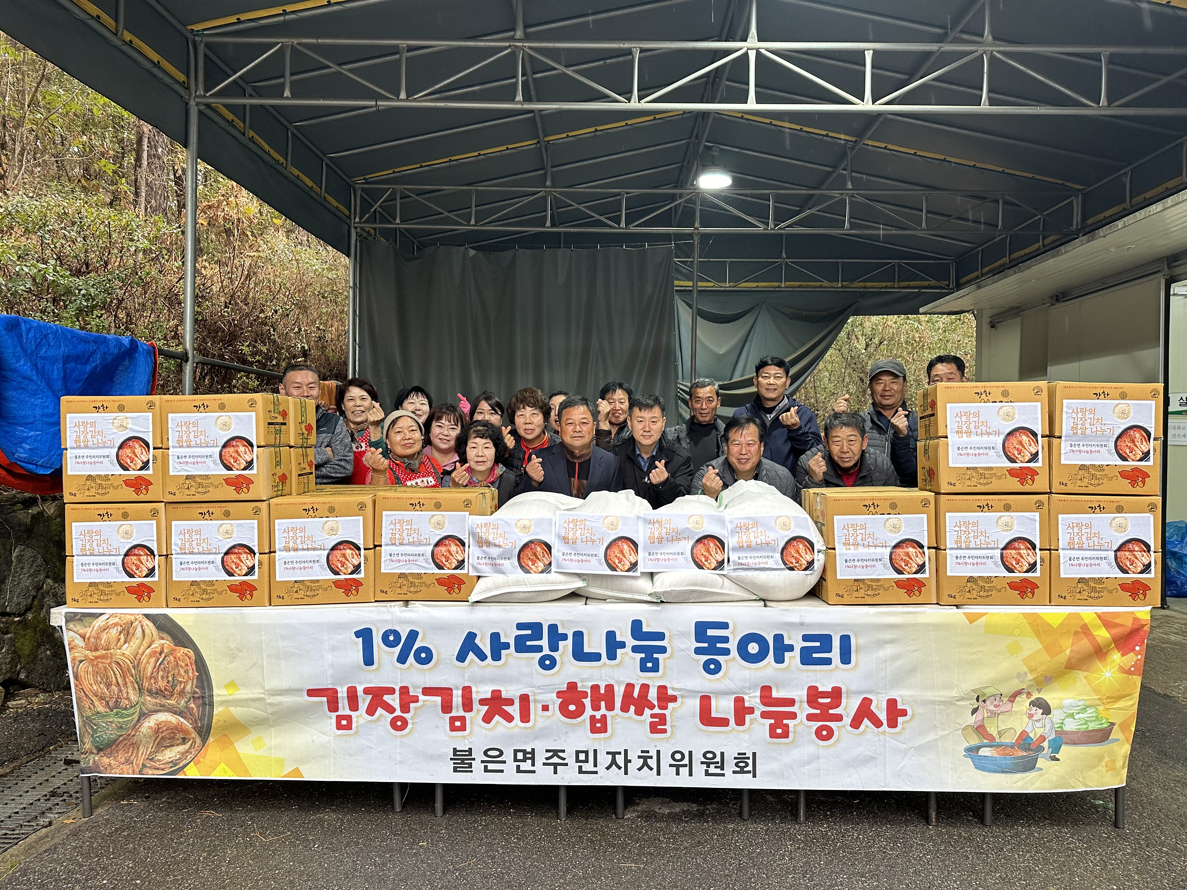 불은면 주민자치위원회(위원장 박병일)가 지난 15일부터 16일까지 ‘1%사랑나눔동아리’ 주관으로 관내 취약계층을 돕기 위한 사랑의 김장김치 및 햅쌀 나눔 봉사를 실시했다.