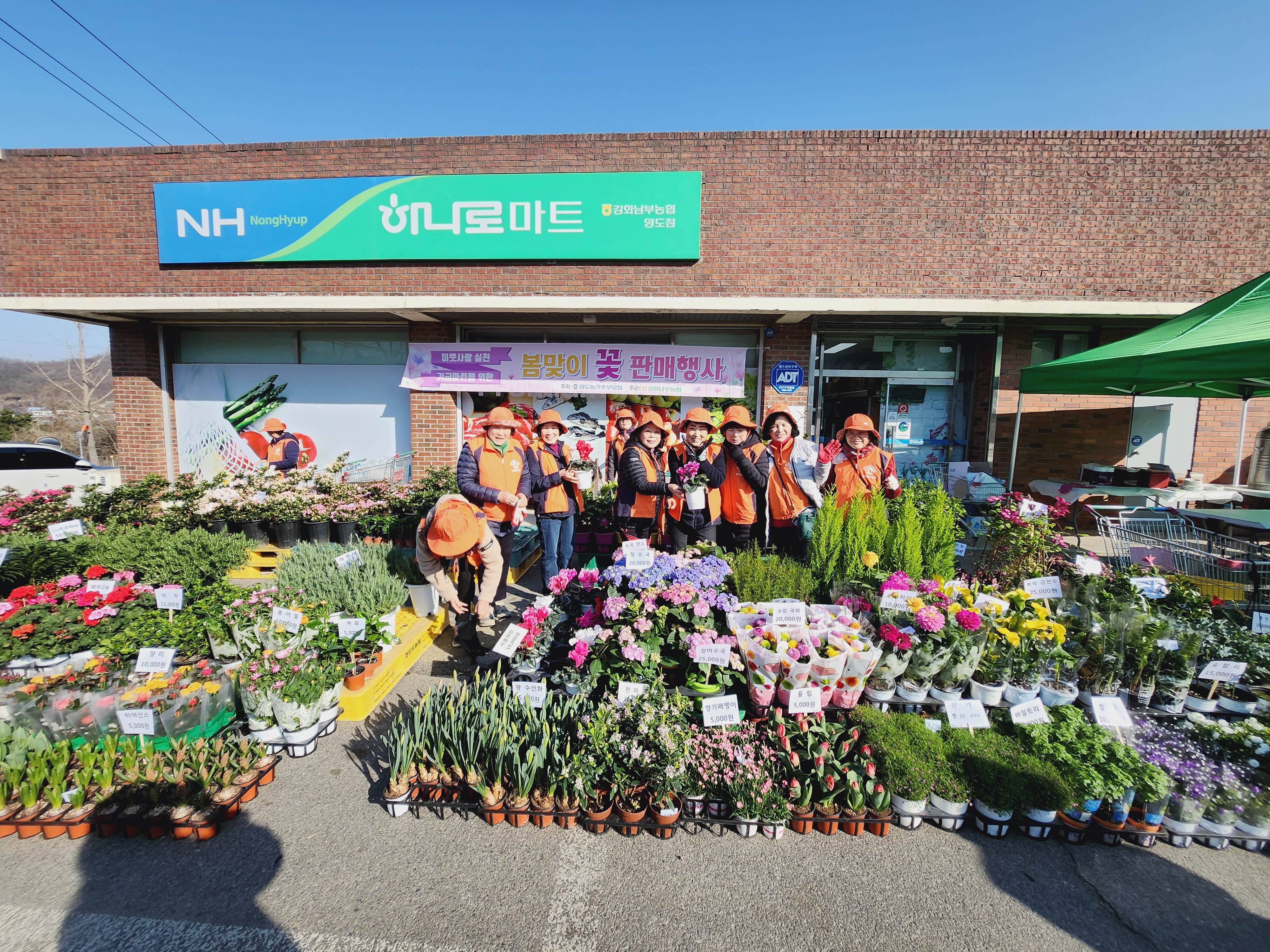 강화군 양도면 농가주부모임회(회장 김미경)가 지난 21일 이웃사랑 기금 마련을 위해 남부농협 양도지점 마당에서 화훼 장터를 개최했다.