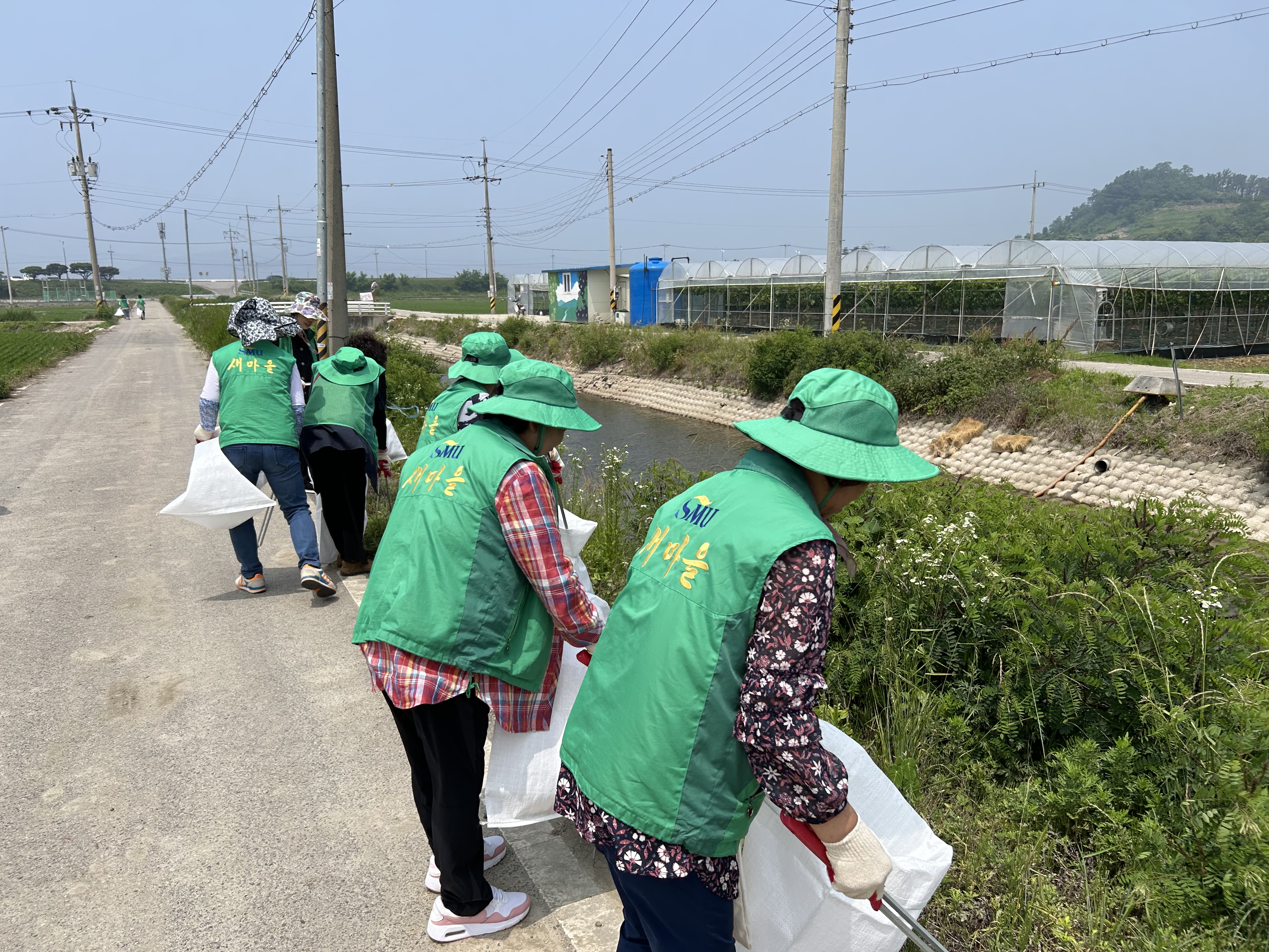 양도면 새마을남녀지도자협의회(회장 고광순, 김애경)가 지난 11일 건평리 해안가 일대에서 환경정화 활동을 실시했다.