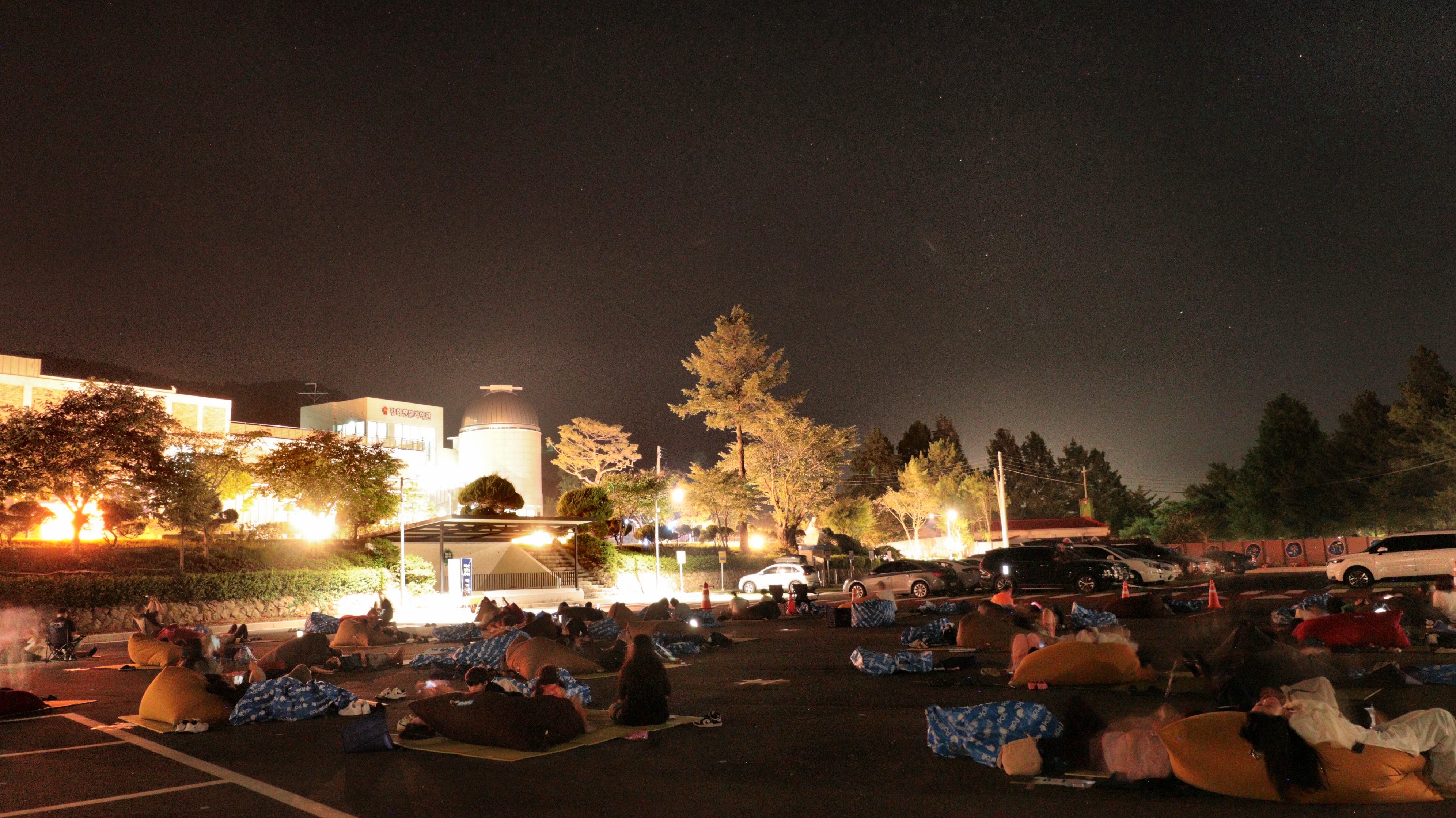 이에 군에서는, 이 유성우를 누워서 편안하게 관측할 수 있도록 천문관의 넓은 주차장 구역에 빈백과 매트를 설치해 100여 명의 참석자들이 눕거나 기댄 채 여름밤 우주쇼를 감상할 수 있도록 했다.