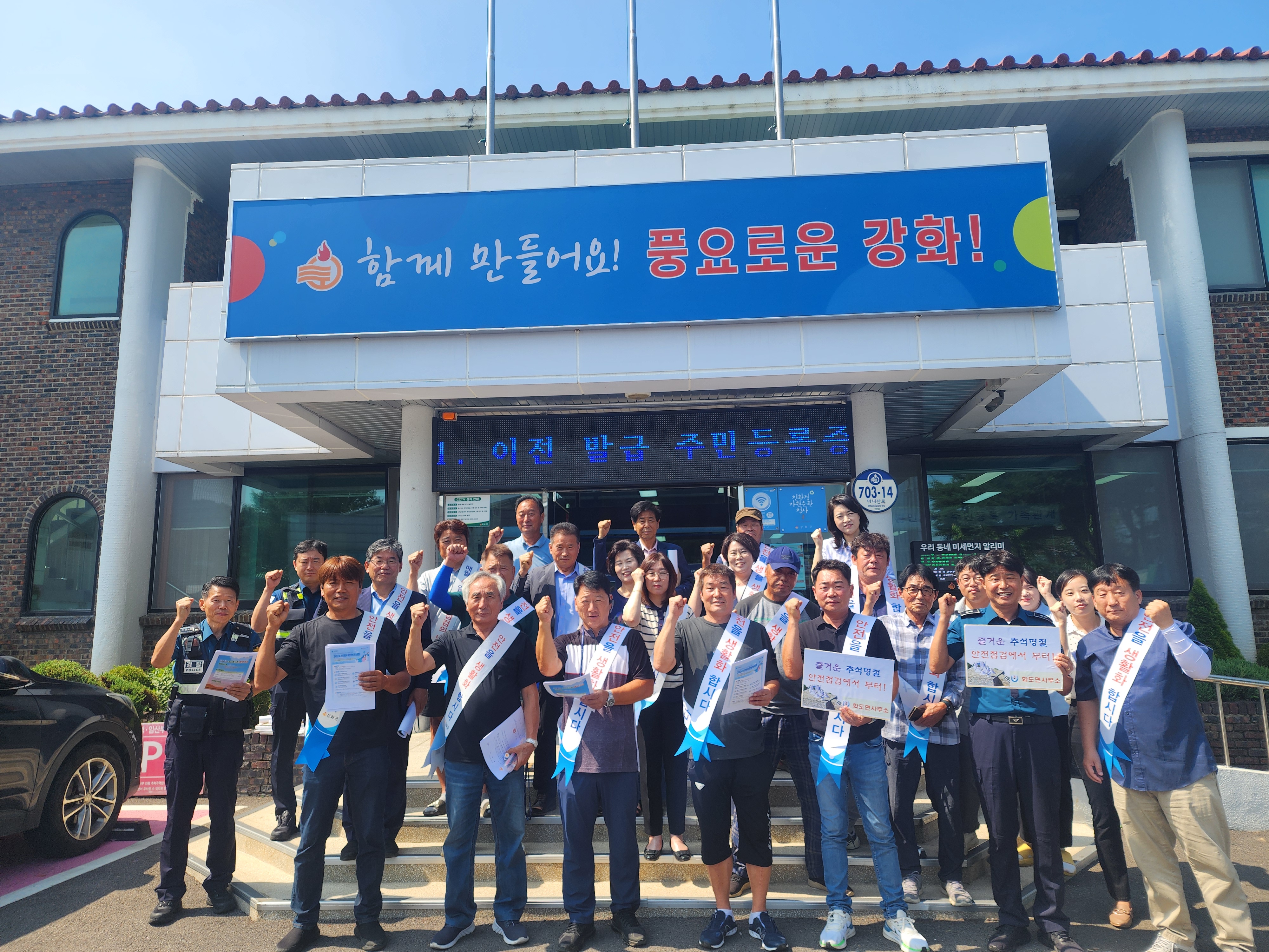 강화군 화도면(면장 박수연)과 화도면 이장단(단장 조성진)은 지난 11일 면사무소 2층 회의실에서 이장단 및 유관 기관장 등 28여 명이 참석한 가운데 이장 회의를 열고 ‘안전한 추석 연휴 보내기 캠페인’을 실시했다.