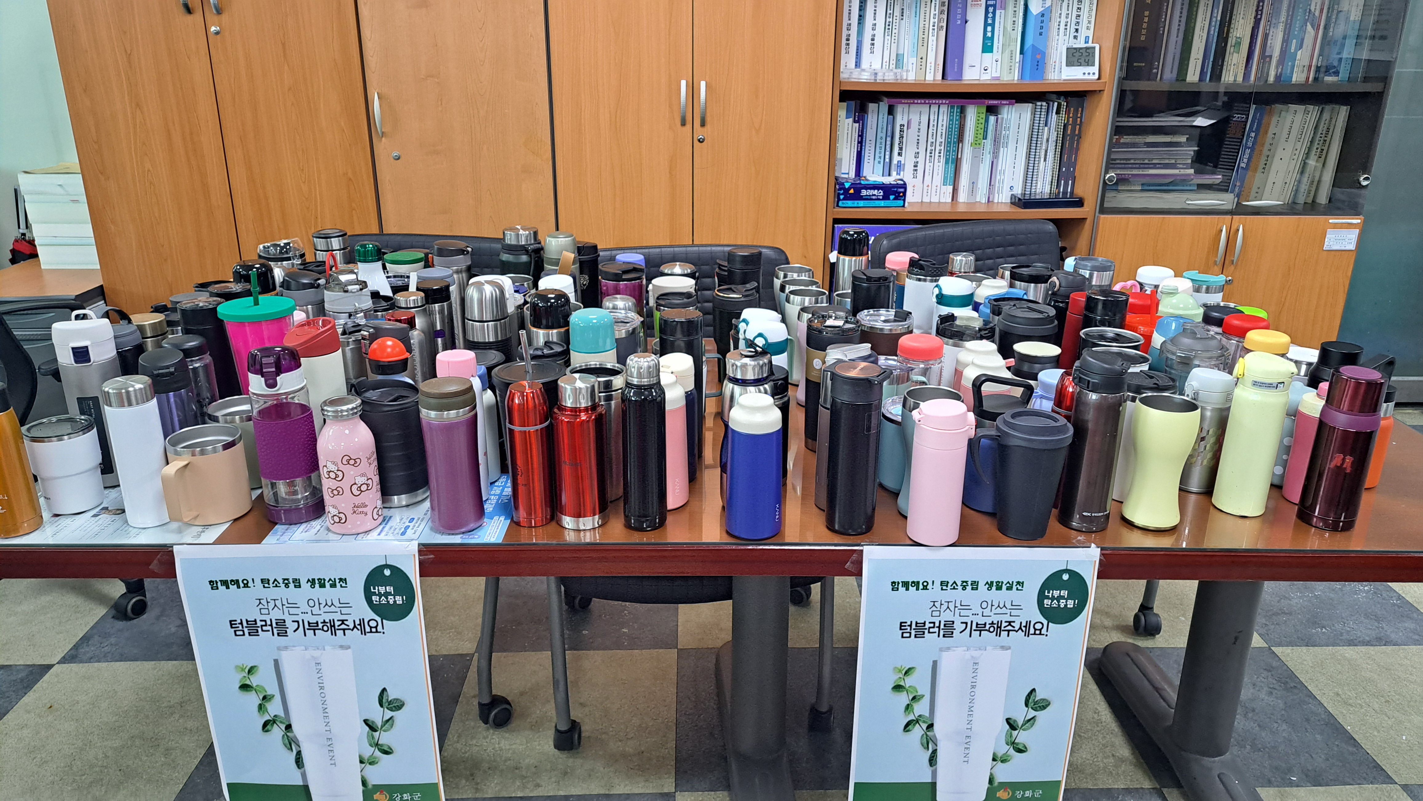 강화군이 직원들을 대상으로 집에서 잠자고 있는 「텀블러 나눠쓰기」캠페인을 전개했다.