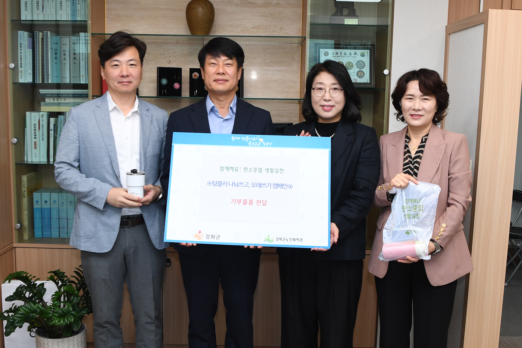 군 관계자는 “이번 텀블러 기부는 직원들이 환경을 보호하기 위해 자발적으로 나선 좋은 사례입니다.”라며, “강화군은 작은 실천이 큰 변화를 이끌 수 있다는 믿음으로, 지역 사회와 함께 지속 가능한 환경 보호 활동과 탄소 중립 실천에 적극 앞장서겠다.”고 말했다.