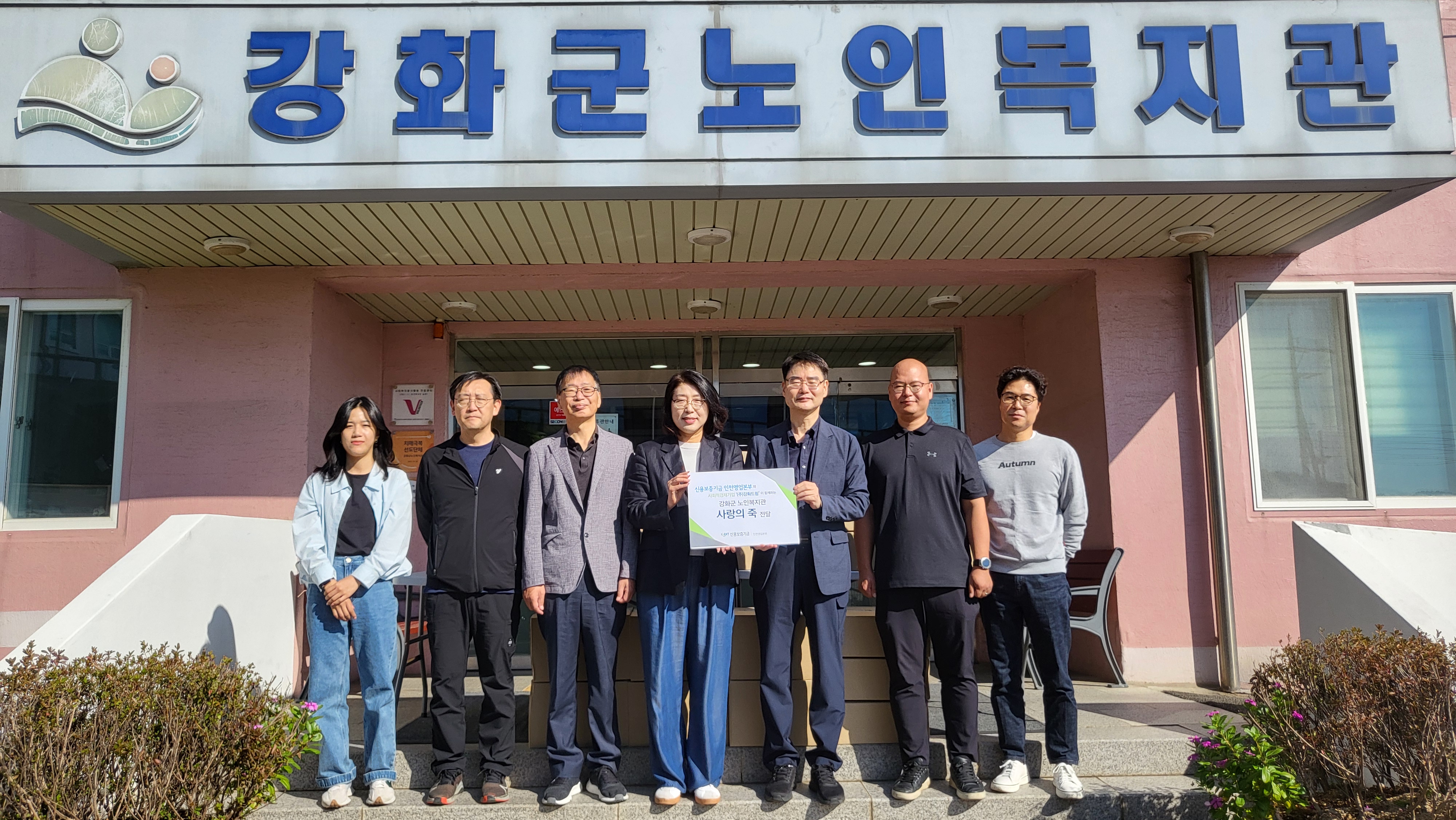 이번 전달식은 신용보증기금 인천영업본부와 사회적경제기업 ㈜강화드림이 함께했으며, 독거노인 및 소외 계층 어르신들께 전복죽․팥죽․단호박죽 등 총 738개의 죽을 전달했다.