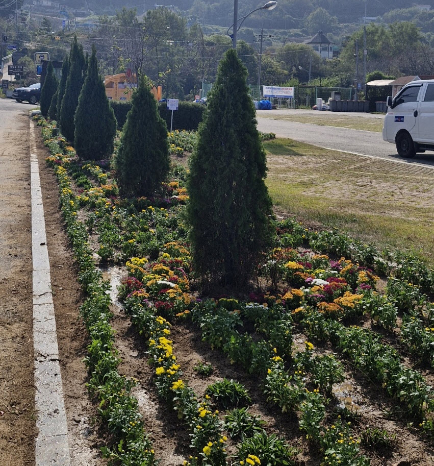 유동 인구가 많은 장화리 해넘이 공원 일원에 가을 분위기가 물씬 풍기는 화도면을 조성하고자 소국 등 가을꽃 약 2,000본을 식재한 것이다.