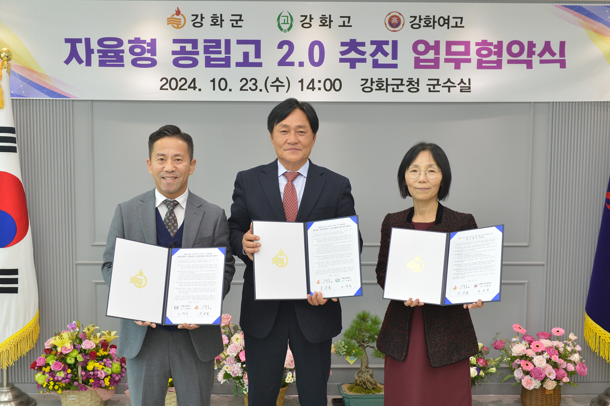 강화군(군수 박용철)은 23일 공교육 활성화와 지역교육 여건 개선을 위해 강화고등학교, 강화여자고등학교와 ‘자율형 공립고등학교 2.0 운영 업무협약’을 체결했다고 밝혔다.