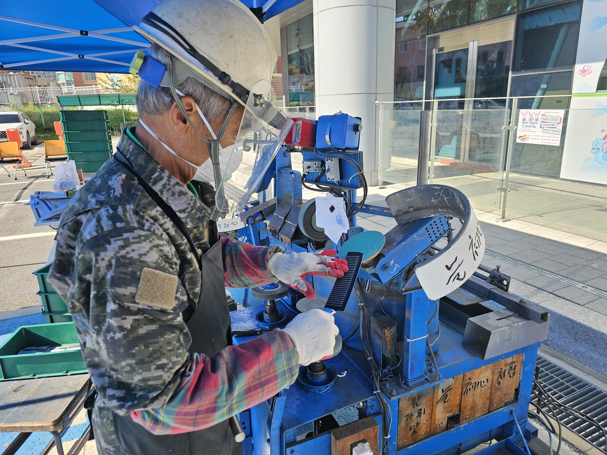 강화군행복센터, 김장철 대비 ‘칼갈이 봉사’ 인기 만점