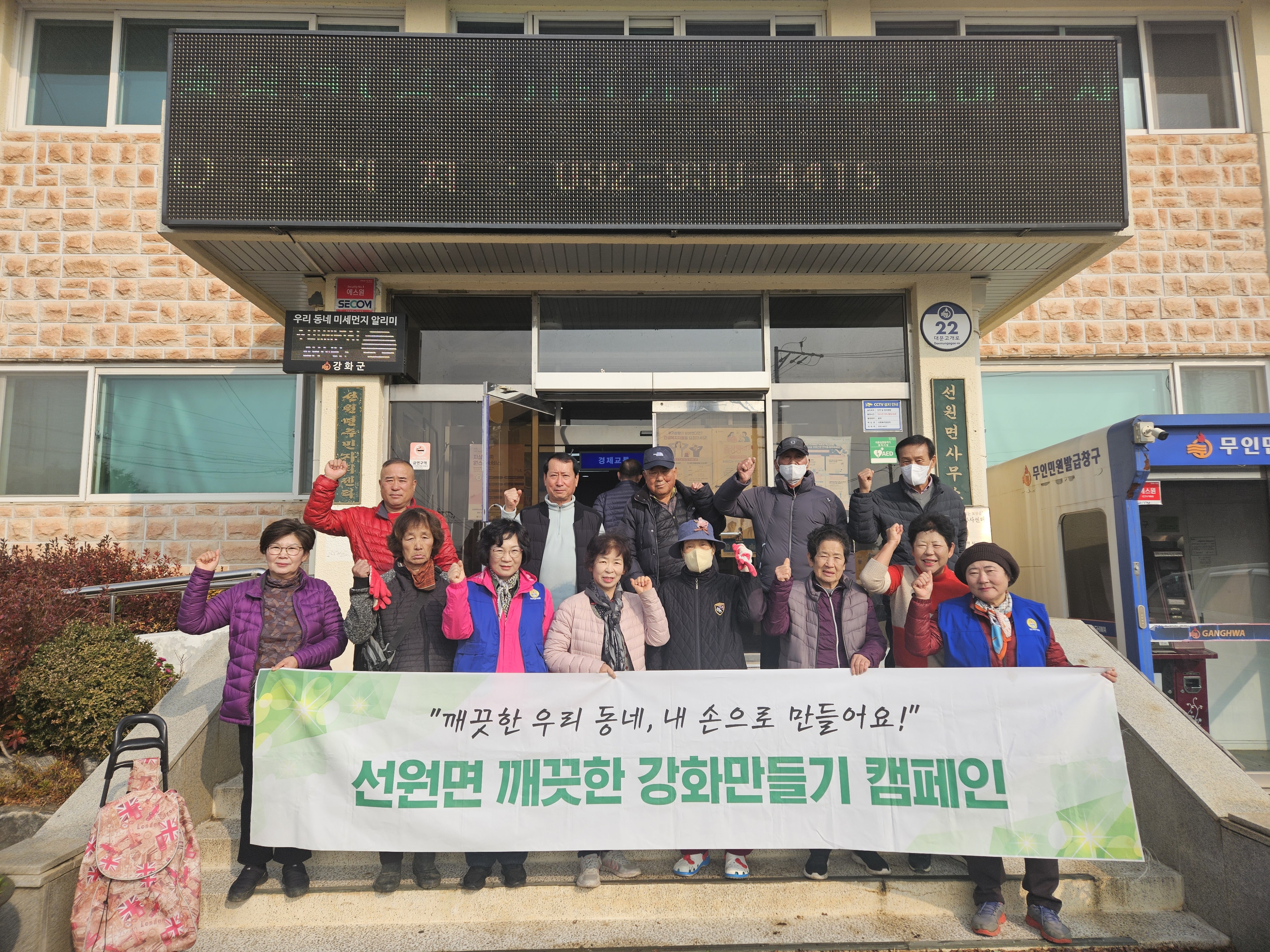 강화군 선원면(면장 서광석)이 11월 21일부터 3주간 총 10개 단체 약 120명이 참여하는 범군민 환경정화 활동을 실시하고 있다.