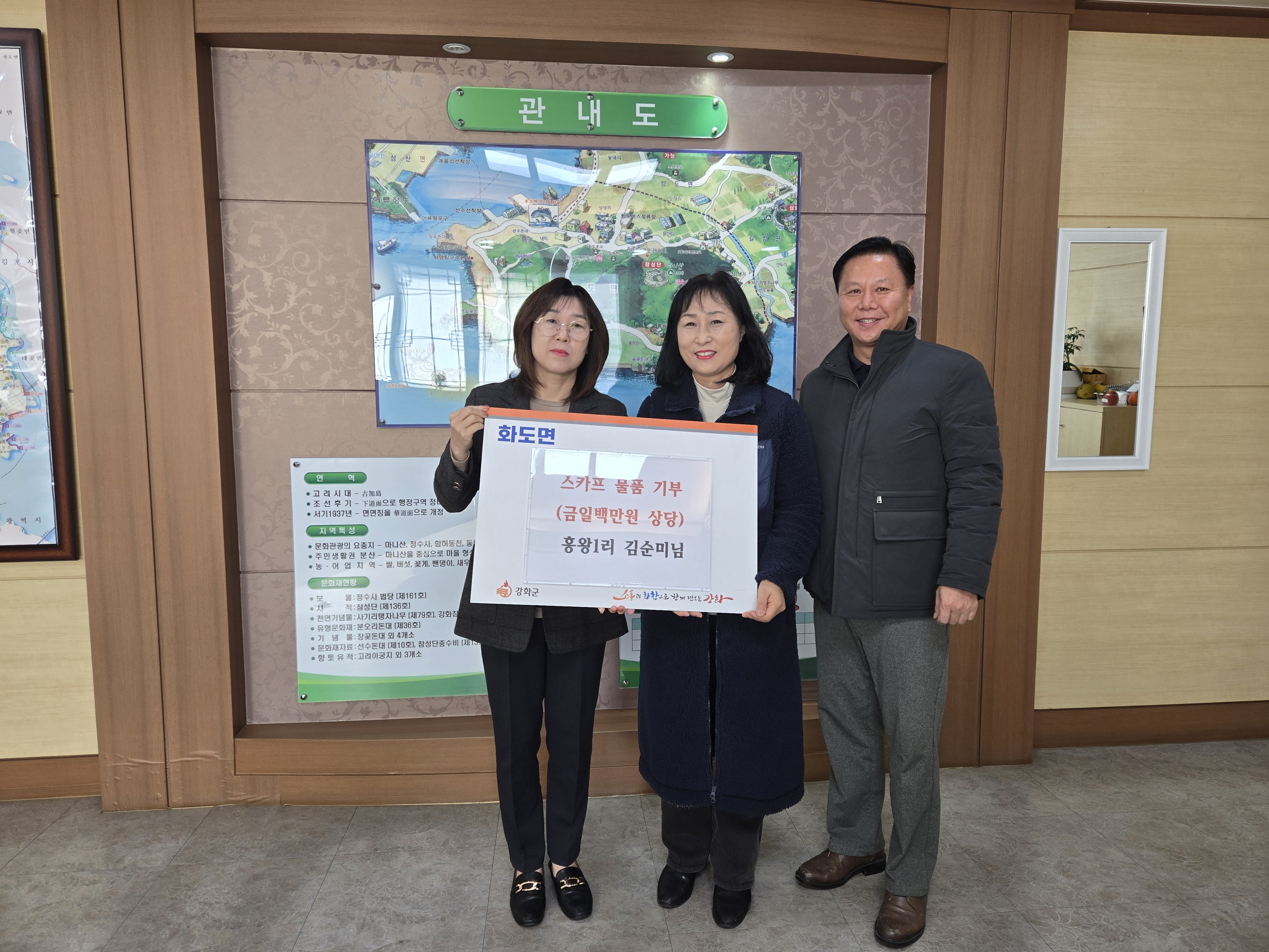 한편 김순미 씨는 지난 18일 독거 어르신들의 따뜻한 겨울나기를 위해 스카프 222개(일백만 원 상당)를 화도면에 기탁한 바 있다.