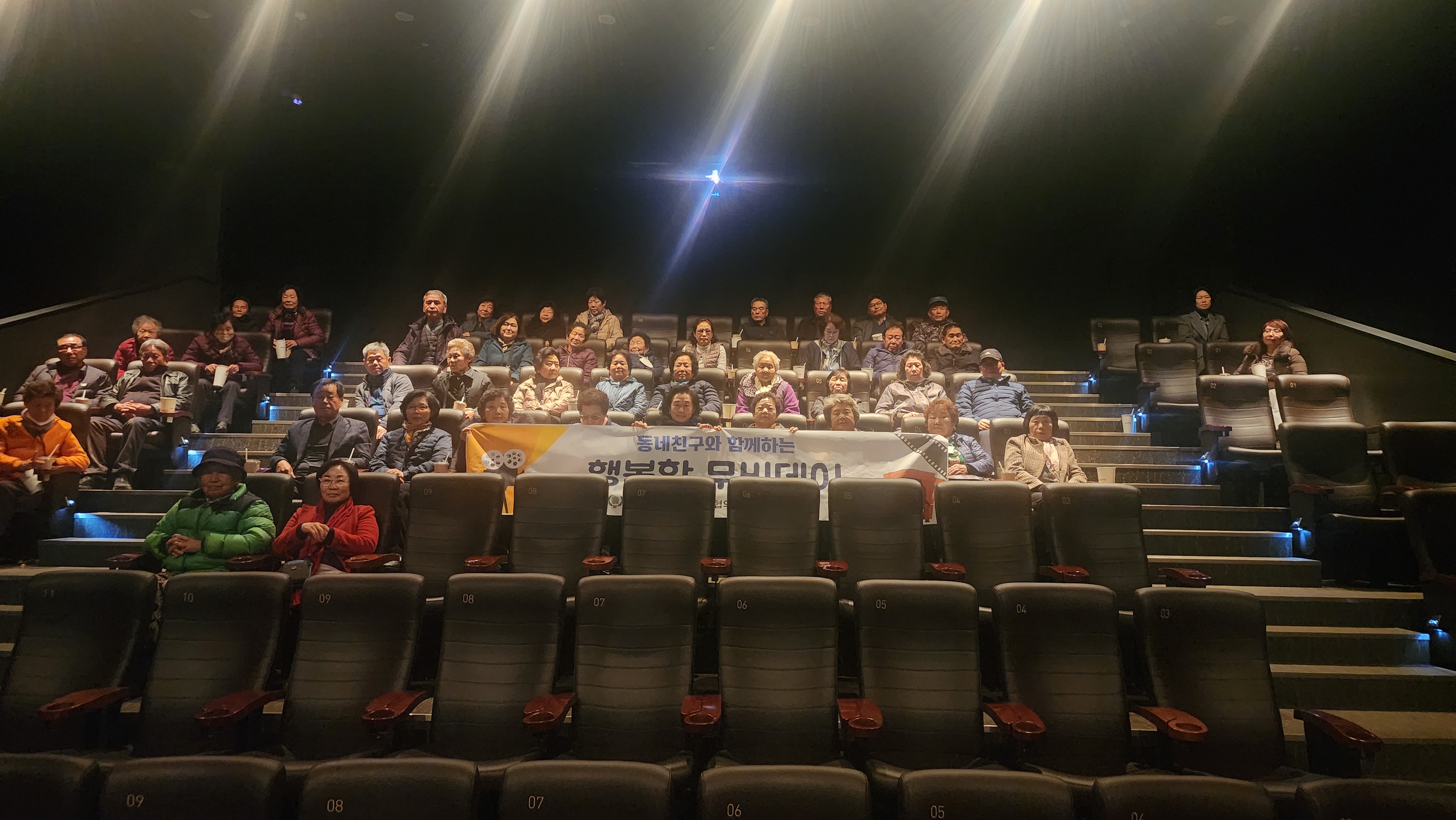 ‘동네친구와 함께하는 행복한 무비데이’ 행사는 상반기에 1회 추진했던 사업으로 지역 어르신들의 만족도가 높아 하반기에 다시 한번 진행했다.