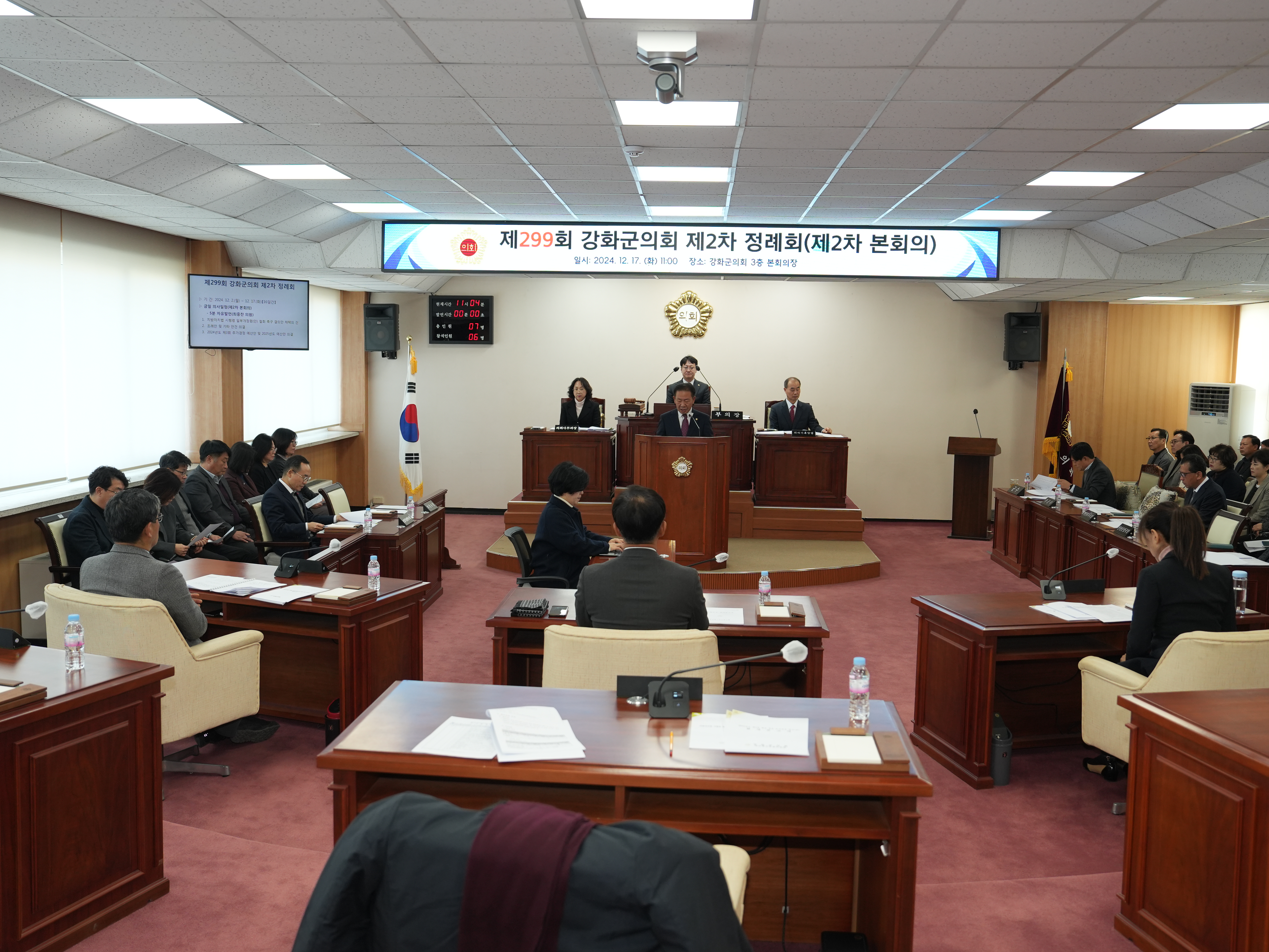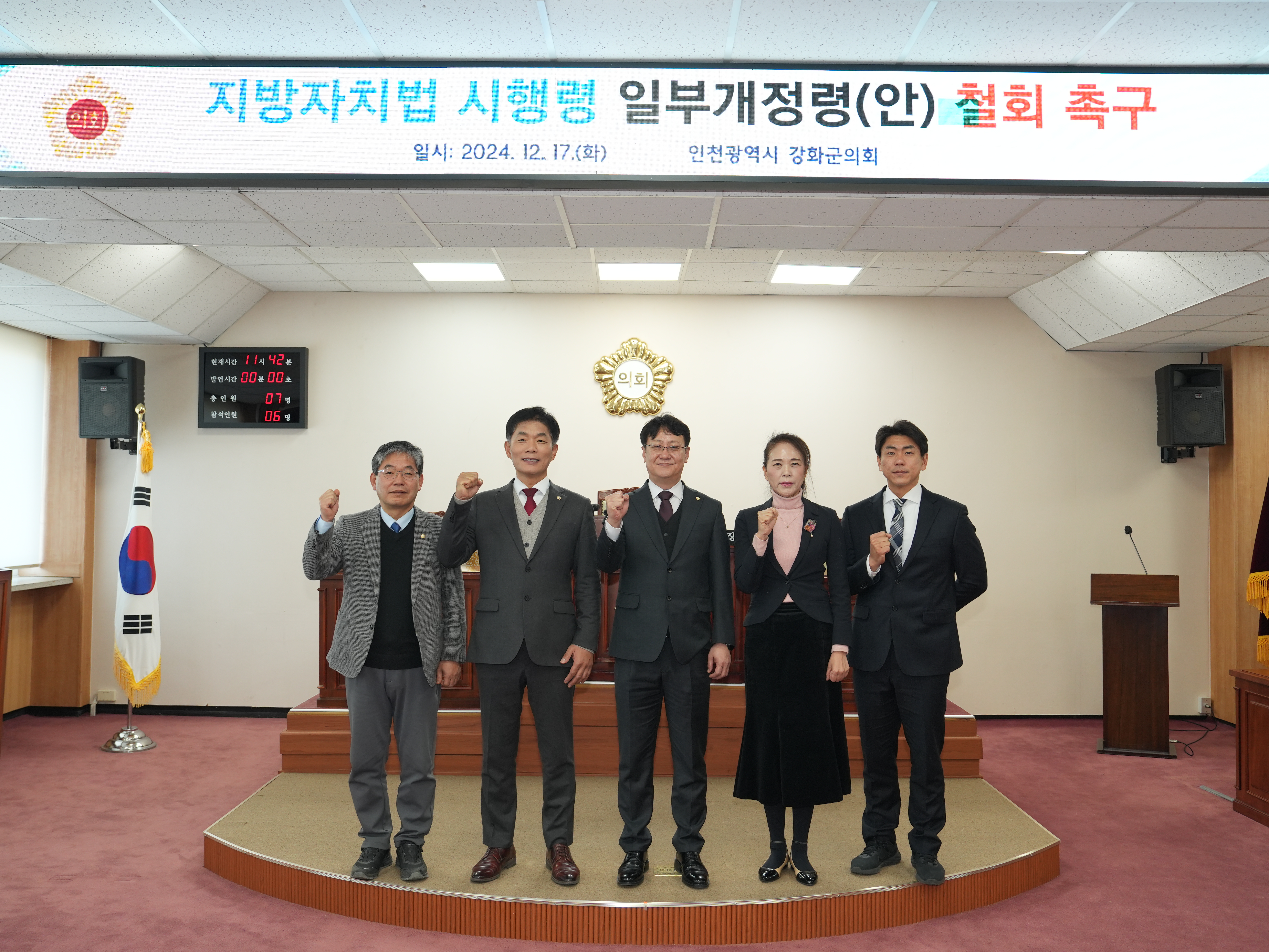 강화군의회(의장 직무대리 한승희 부의장)가 17일, 제299회 제2차 정례회 제2차 본회의에서 박승한 의원이 대표 발의한 지방자치법 시행령 일부개정령(안) 철회 촉구 결의문을 만장일치로 채택했다고 밝혔다.