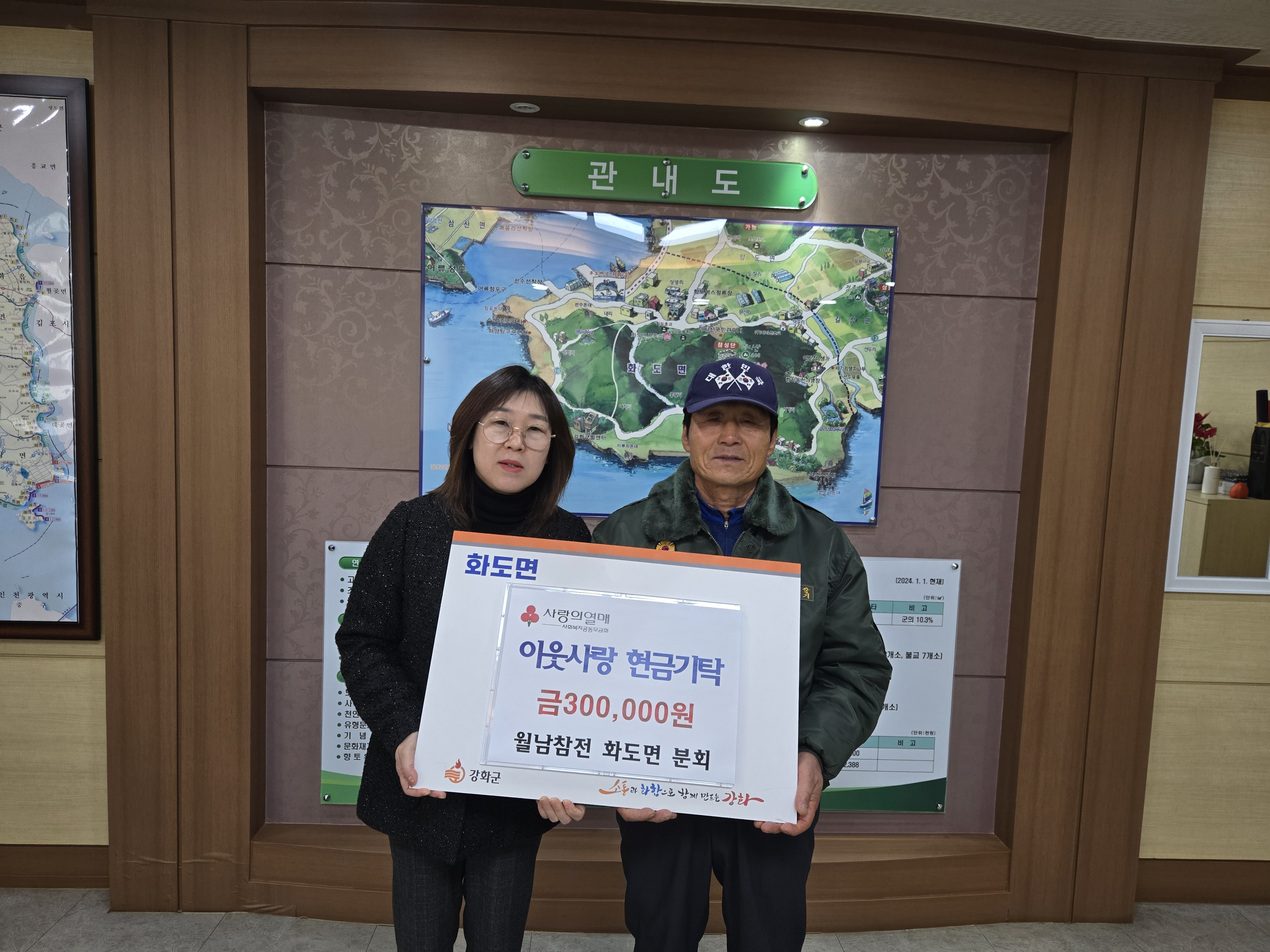 강화군 화도면(면장 박수연)은 지난 19일 월남참전 화도면분회장(회장 김충기) 회원들이 정성을 모아 이웃들과 따뜻한 연말을 보내고자 화도면에 성금 30만 원을 기탁했다고 전했다.