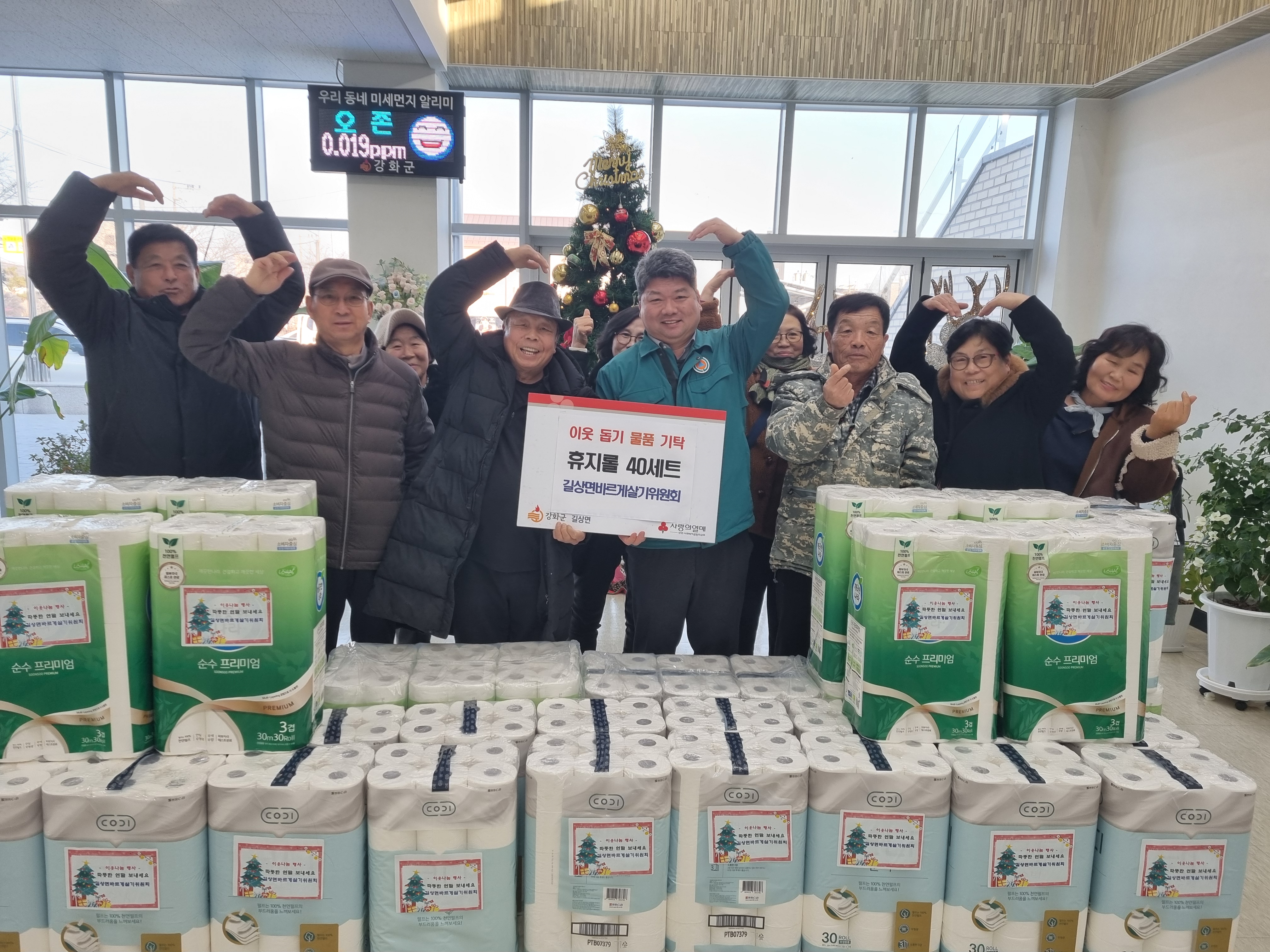 강화군 길상면(면장 김재구)은 지난 23일 길상면 바르게살기위원회(회장 최진교)로부터 연말을 맞아 어려운 이웃을 위한 롤휴지 40세트를 면사무소에 기탁받았다고 전했다.