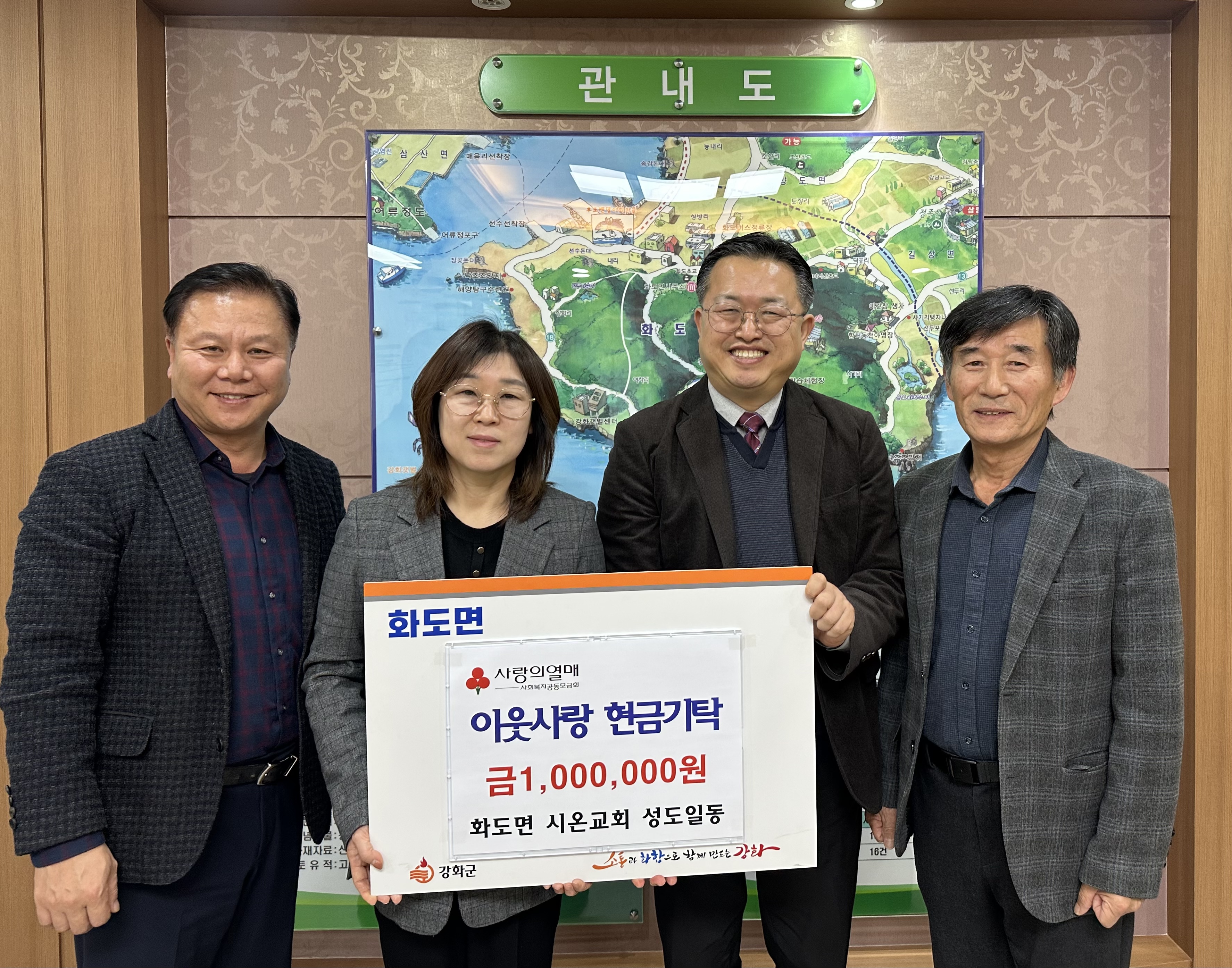 강화군 화도면(면장 박수연)은 지난 2일 화도시온교회(목사 이준구)로부터 이웃과 함께 새해를 맞이해 이웃 돕기 성금 100만 원을 기탁받았다고 전했다.