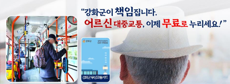 강화군은 대중교통이 열약한 지역 여건을 극복하고, 어르신들의 이동권 보장을 위해 70세 이상 군민을 대상으로, 관내에서 승·하차한 버스요금을 분기별 최대 4만5천원까지 지원해 주고 있다.
