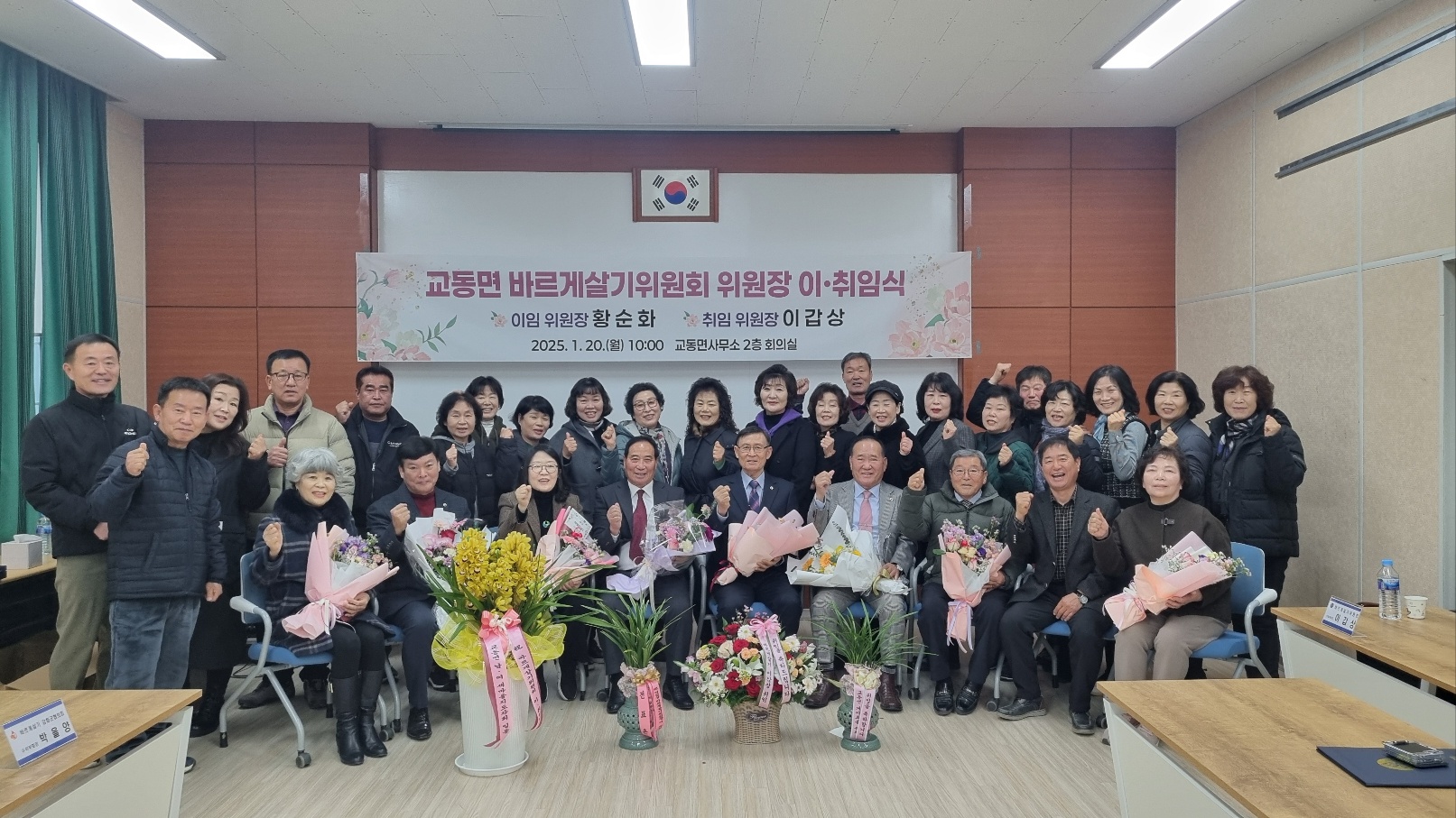조현미 교동면장은 “그동안 묵묵히 바르게살기위원장으로서 교동면 발전을 위해 일해주신 위원장님께 감사드린다”며 “새로 취임하시는 이갑상 위원장님 또한 그동안 교동면을 위해 각종 기부와 다양한 활동을 통해 면을 위해 힘써오신 만큼 앞으로도 바르게살기위원장으로서 많은 도움 주시기를 부탁드린다”고 전했다.