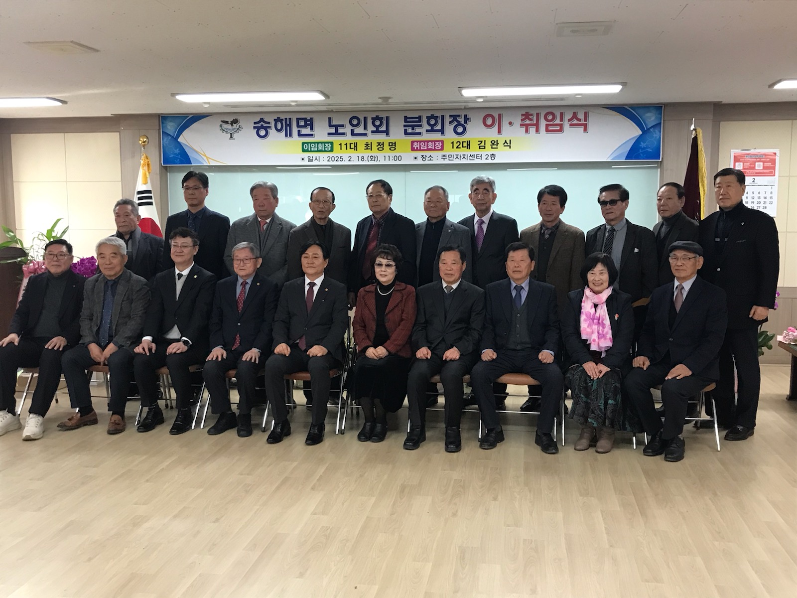 강화군 송해면 노인회 분회(회장 김완식)는 지난 18일 송해면주민자치센터에서 제11·12대 분회장 이·취임식을 개최했다고 밝혔다.