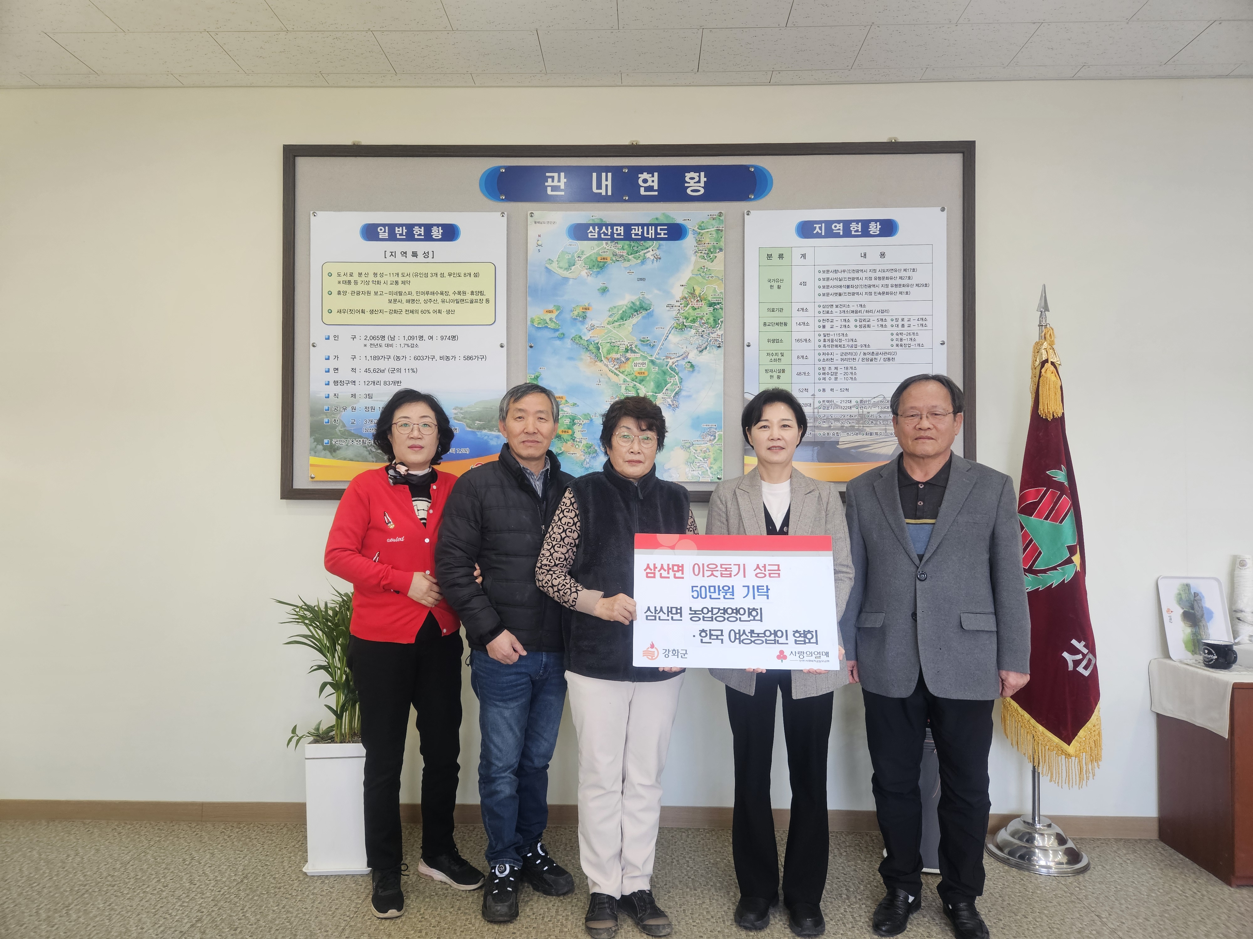 강화군 삼산면 농업경영인회(회장 정현진)와 한국여성농업인협회(회장 김순자)는 지난 20일 어려운 이웃을 위한 성금 50만원을 삼산면에 전달하며 지역사회의 훈훈함을 더했다.