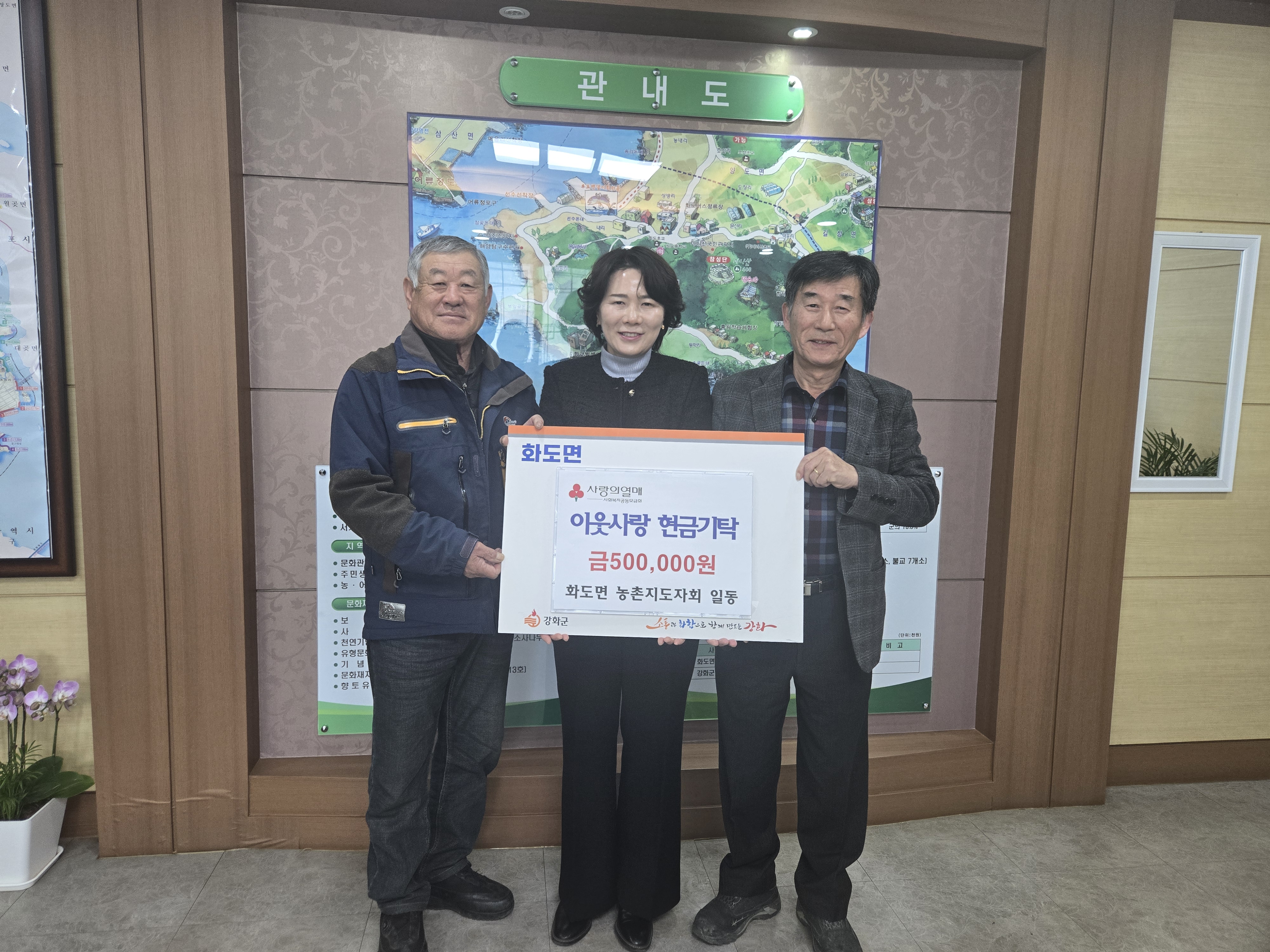 강화군 화도면 농촌지도자회(회장 김근석)는 지난 25일 관내 취약계층을 돕기 위한 이웃사랑 성금 50만 원을 화도면에 기탁했다.