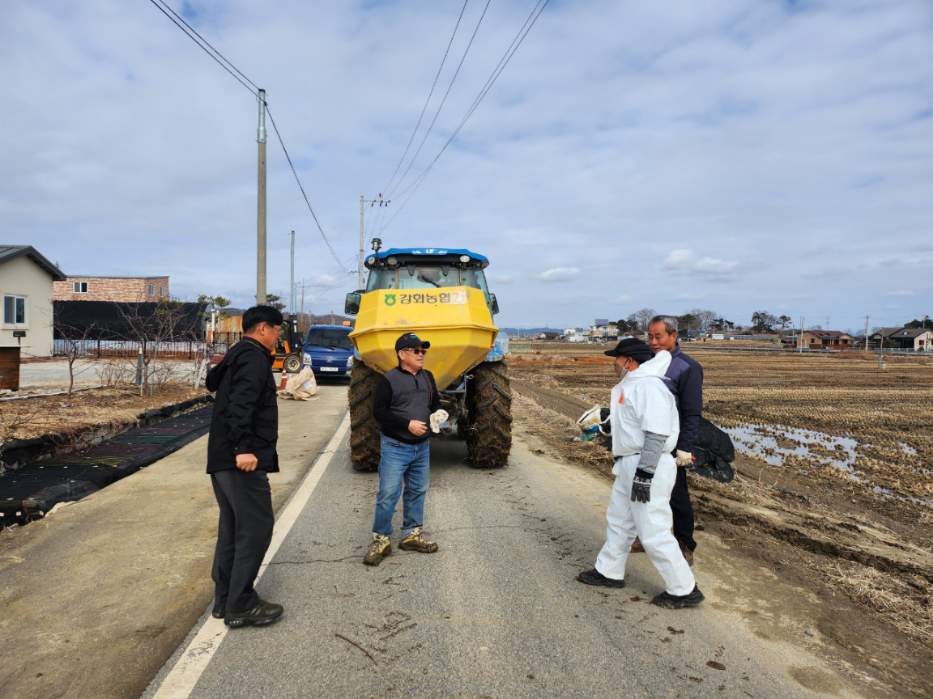 강화군 송해면(면장 종인선)은 지난 5일 토양개량제 공동살포 작업현장을 찾아 농민들을 격려하고 농기계 안전사고에 주의할 것을 당부했다.