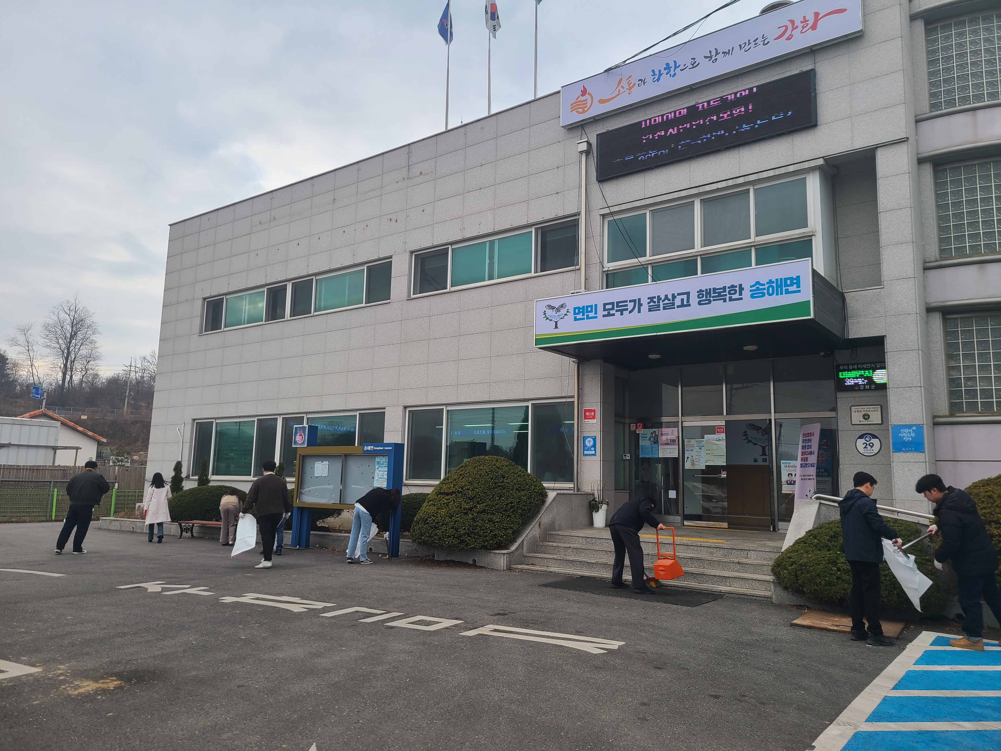 강화군 송해면(면장 종인선)이 지난 12일, 따뜻한 봄을 맞아 송해면 공무원 전직원 및 근로자가 함께하는 청사 대청소 활동을 실시했다고 밝혔다.