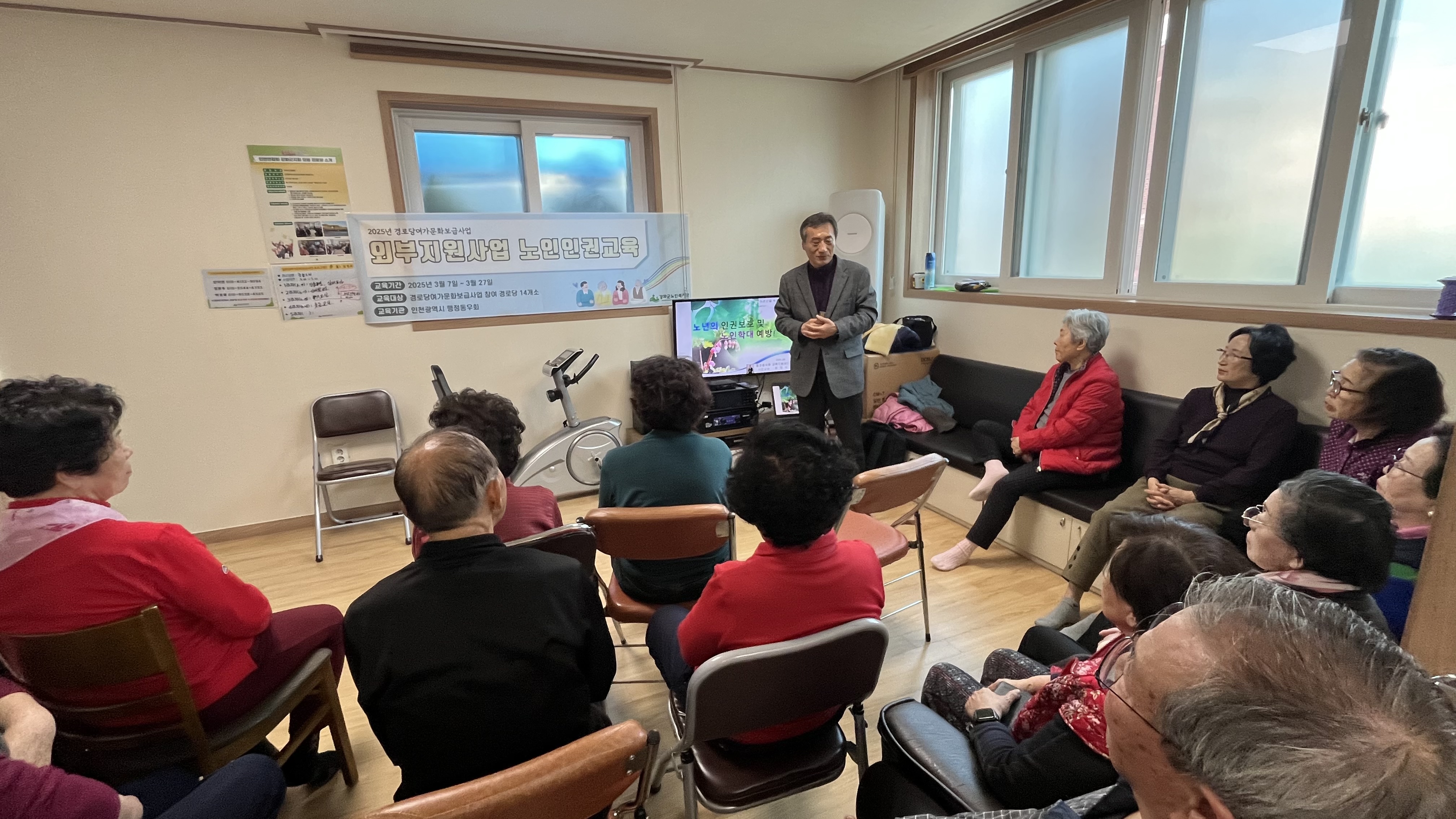 강화군노인복지관(관장 윤심)이 지난 6일부터 오는 28일까지 관청6리 경로당 등 14개소에서 노년층의 인권 보호와 인식 개선을 위한 ‘2025년 경로당 여가문화 보급 사업 노인 인권 교육’을 진행한다.