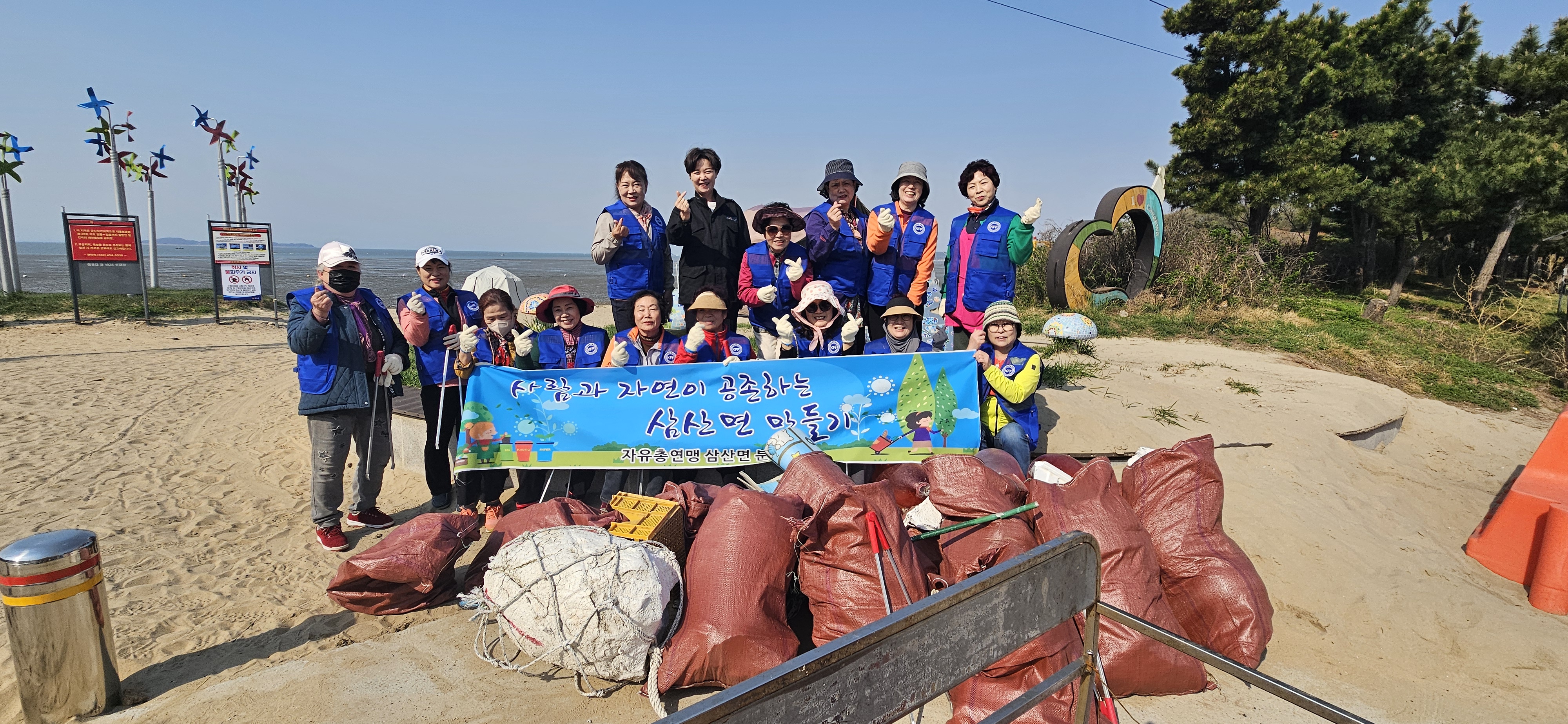 한국자유총연맹 삼산면 분회(회장 김준희)가 25일, 민머루 해수욕장 일원에서 환경정화 활동을 펼쳤다.