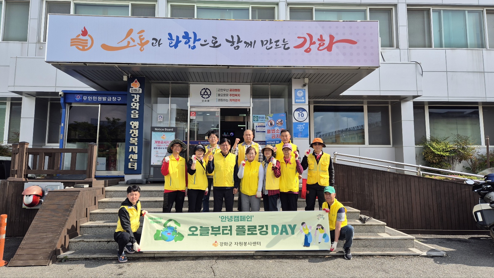 강화군자원봉사센터가 지난 17일, 강화읍 자원봉사 상담가(회장 김용우)와 함께 탄소중립 실천을 위해 2025년 안녕 캠페인의 일환인 「오늘부터 플로깅 DAY」 활동에 나섰다.
