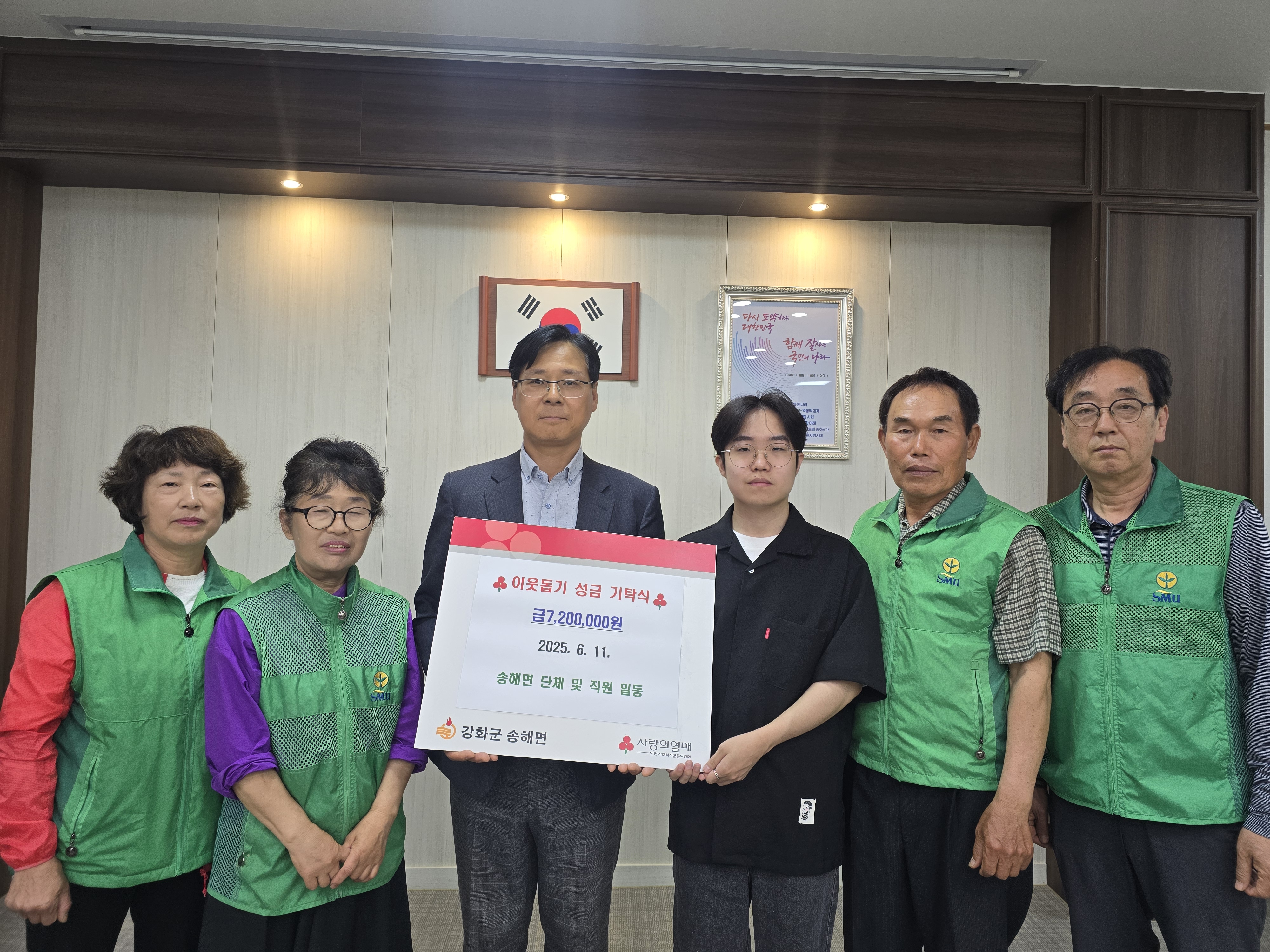 종인선 송해면장도 “도움을 주신 관내 단체 회원분들과 직원분들께 깊이 감사드린다”며, “십시일반 모인 작은 정성과 마음이 치료와 회복에 조금이나마 보탬이 되길 바란다”고 말했다.